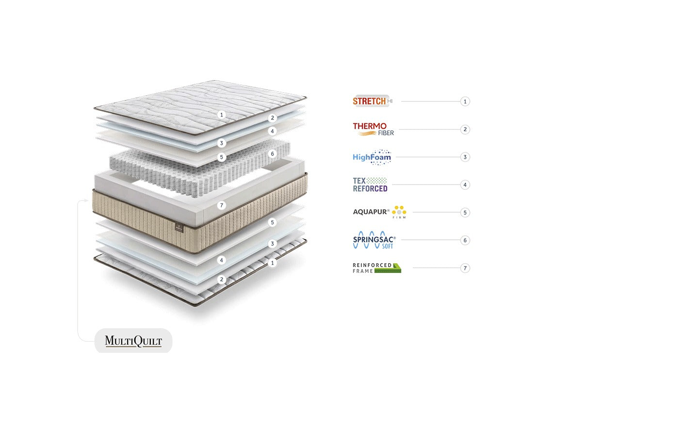 - Aquapur: Material transpirable que ayuda a mantener un entorno de descanso higiénico.