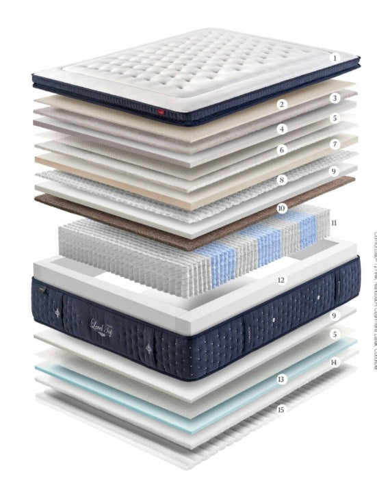 El colchón Level Top es un modelo premium diseñado para ofrecer una experiencia de descanso excepcional, combinando innovación tecnológica, materiales de alta calidad y un diseño multicapas que proporciona máximo confort y adaptabilidad. Su estructura avanzada integra sistemas de muelles ensacados y diferentes capas técnicas que trabajan conjuntamente para adaptarse al cuerpo, aliviar los puntos de presión y garantizar un descanso profundo y reparador.