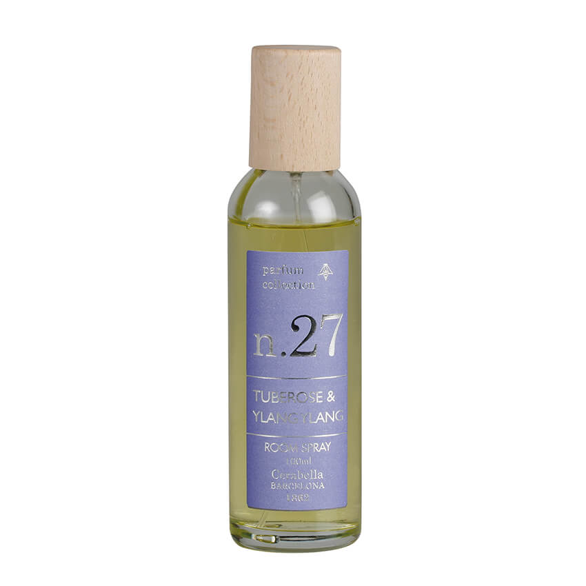 El spray Tuberose & Ylang Ylang Nº27 es un ambientador para el hogar con una fragancia es fresca, encantadora y muy agradable de sentir. El cóctel primaveral de aromas empieza con notas de salida de limón, coco y con acordes verdes, mientras que desde el corazón de la fragancia, la esencia de jazmín y de la flor del ylang-ylang le dan un efecto suave que se mezcla de forma sutil con el nardo. Y unas notas de sándalo, cedro y almizcle le dan más profundidad e intensidad.