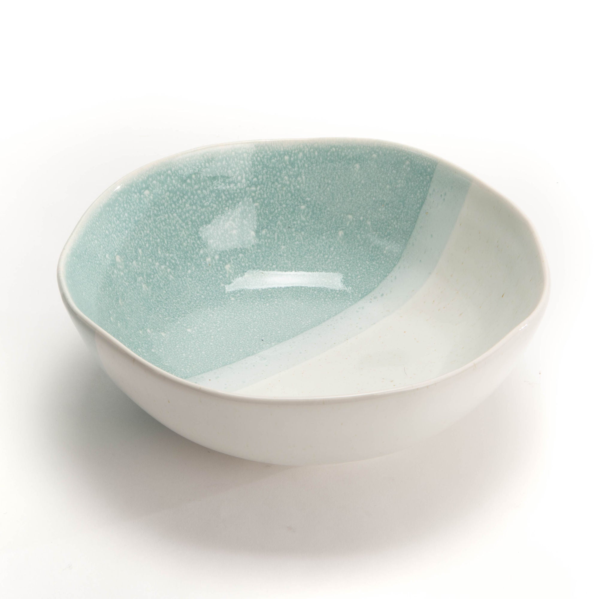 Preciosa ensaladera fabricada en gres de color blanco y verde agua.