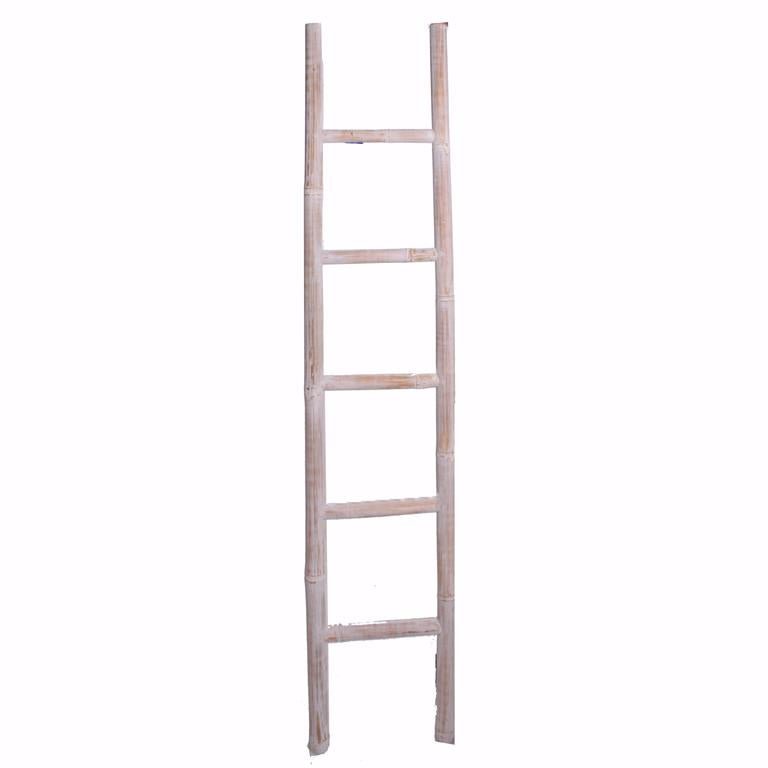 Fabricada en madera de mango con un acabado en pátinas blancas, esta escalera decorativa de cinco peldaños aporta un aire rústico y artesanal a cualquier espacio. Perfecta para colgar toallas, mantas o simplemente como pieza decorativa en baños, dormitorios o salones.