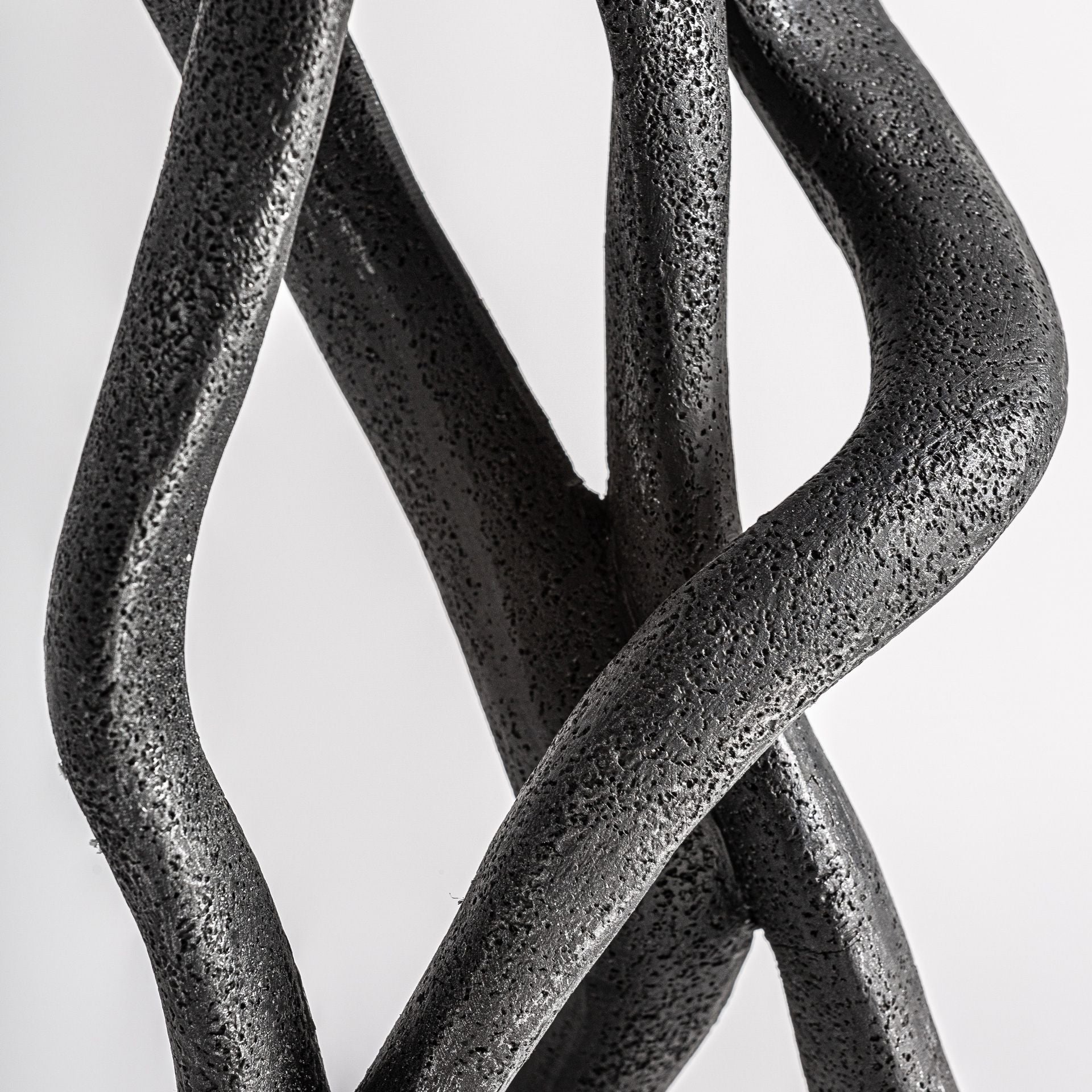 La figura decorativa Enredo es una pieza de diseño moderno y escultórico que captura la esencia del movimiento y la conexión entre formas. Fabricada en resina de alta calidad y presentada en un intenso color negro, esta figura se convierte en un punto focal lleno de fuerza, equilibrio y sofisticación.