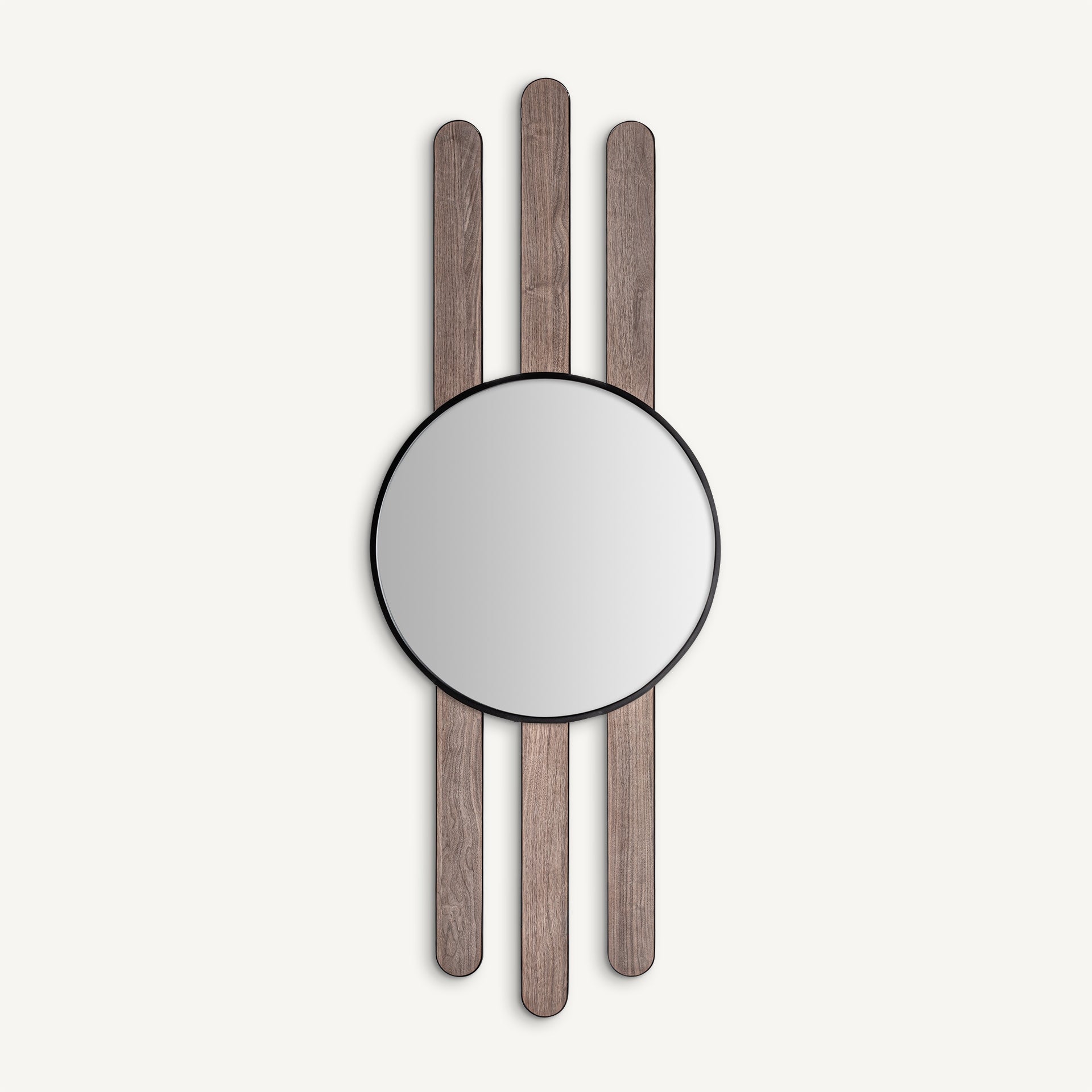 Espejo de estilo clásico, fabricado en madera dm en color marrón, combinado con hierro en color negro y espejo.