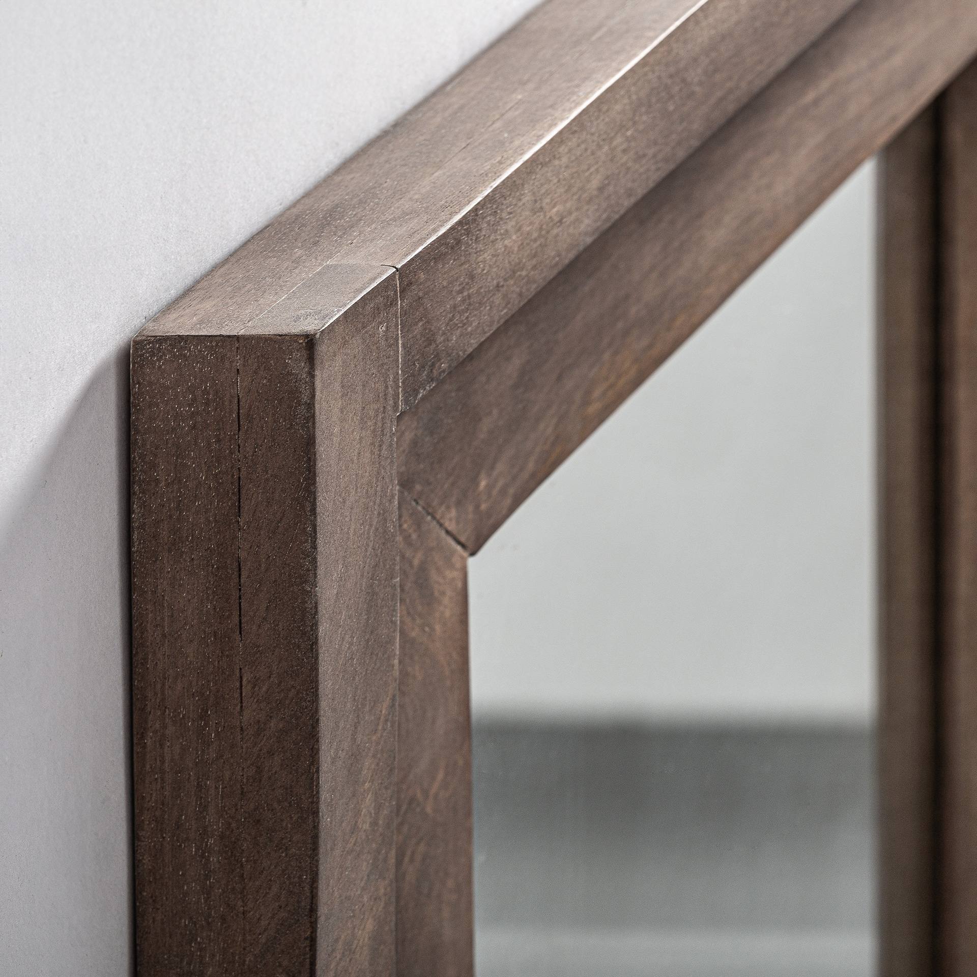 Fabricado en madera de abedul en color marrón, su estructura exhibe una veta delicada y natural que aporta profundidad visual y calidez al espacio. La nobleza de la madera se combina con un acabado cuidadosamente trabajado, que resalta su elegancia y lo convierte en un espejo que transmite historia y buen gusto.