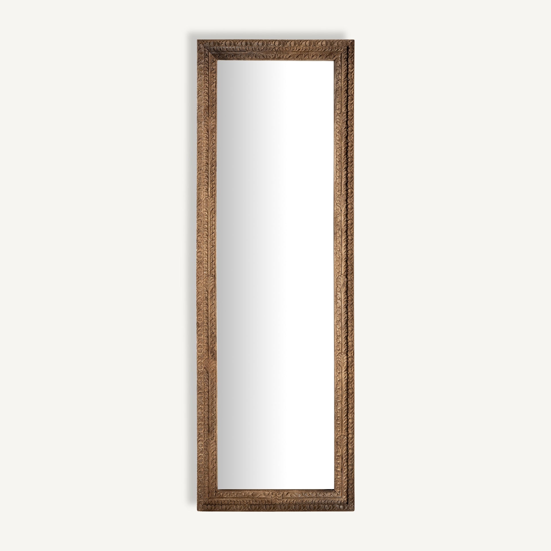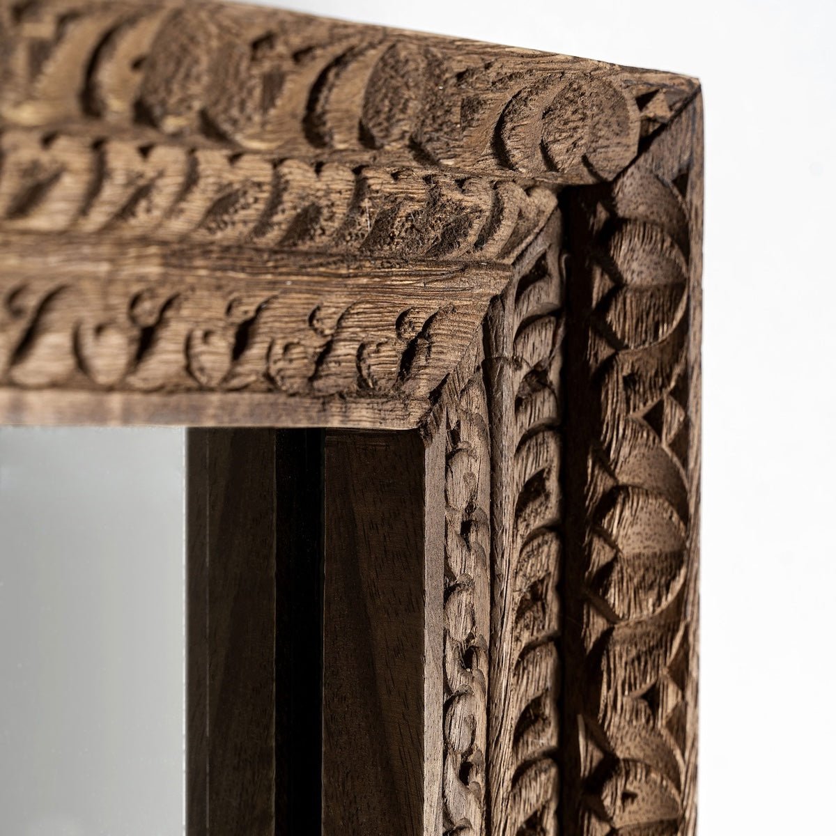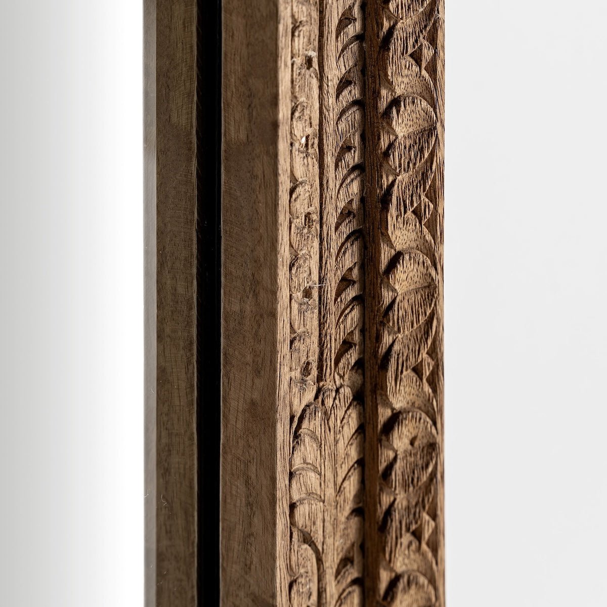Espejo de estilo nórdico, fabricado en madera de mango en color marrón con acabado natural.