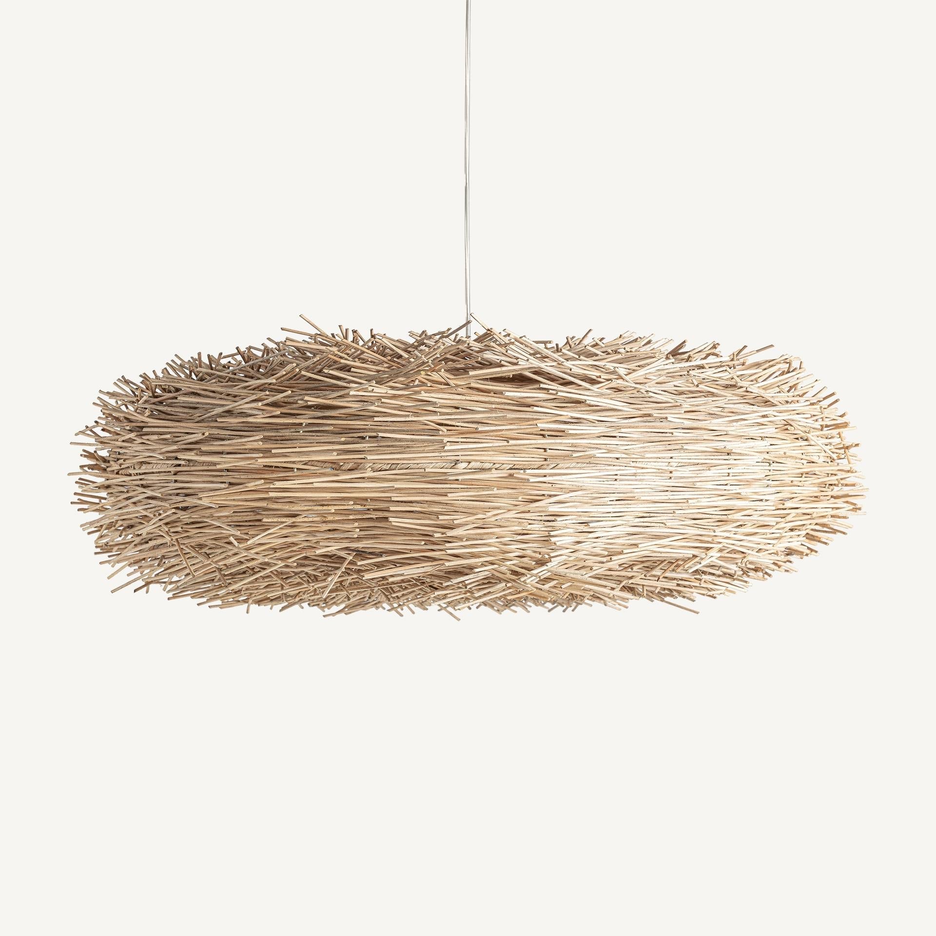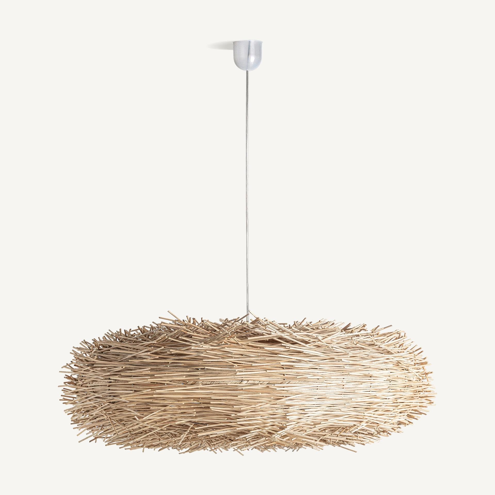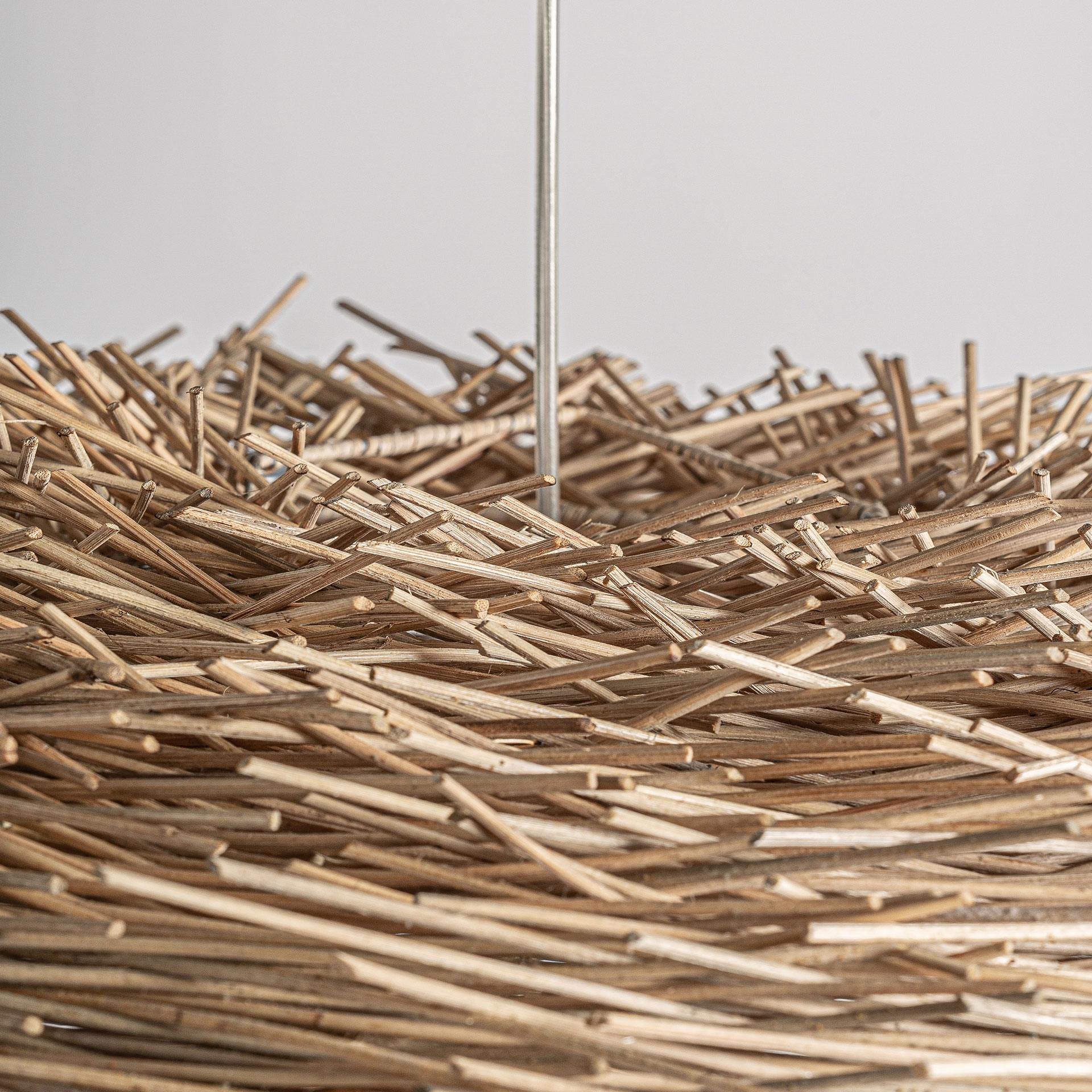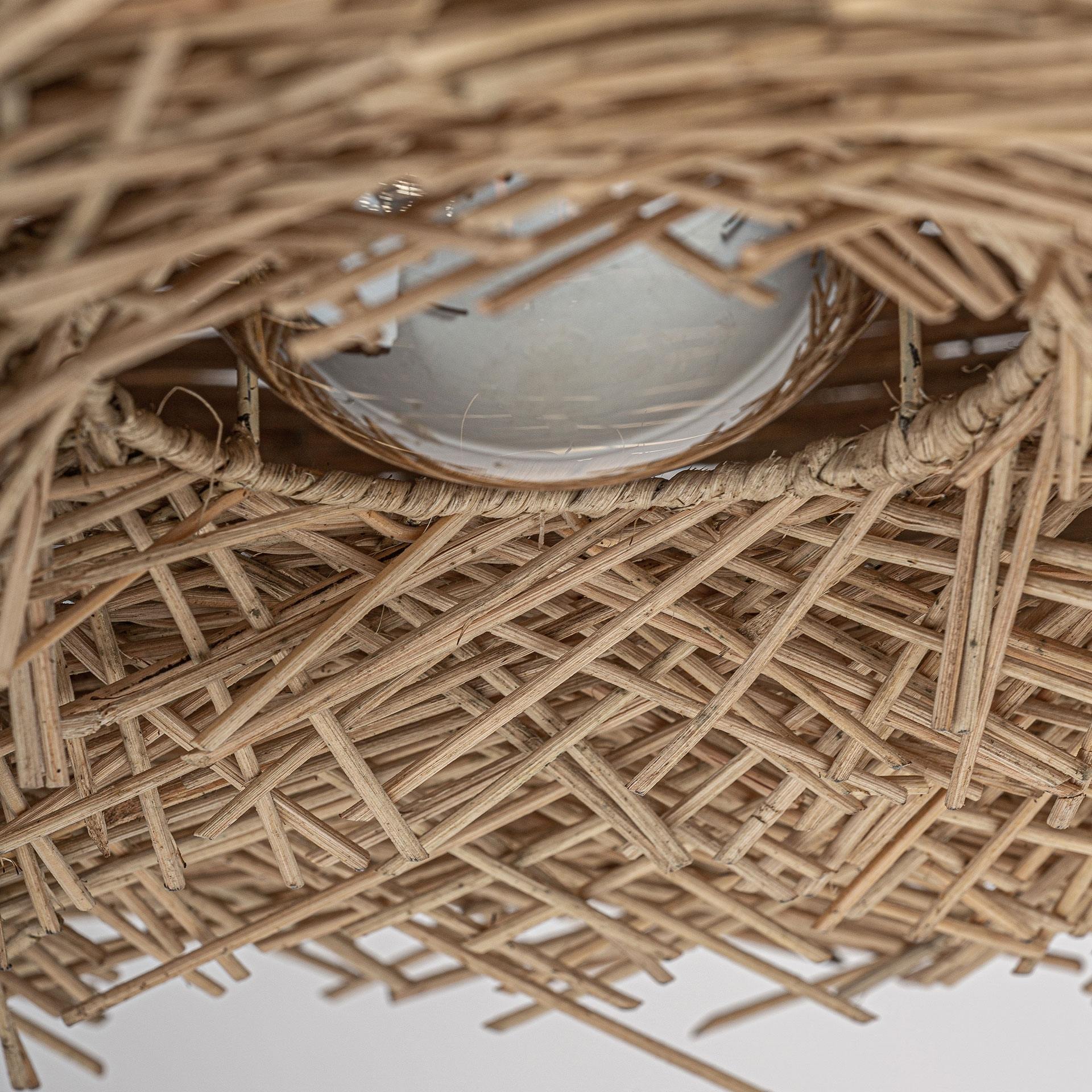 Cada detalle en su diseño refleja la belleza de lo artesanal y lo auténtico, haciendo de esta lámpara no solo una fuente de iluminación, sino también una pieza decorativa clave que aporta carácter a cualquier estancia. Su silueta equilibrada y textura natural la convierten en el complemento ideal para salones, comedores, dormitorios o cualquier rincón que necesite un toque bohemio, relajado y elegante.