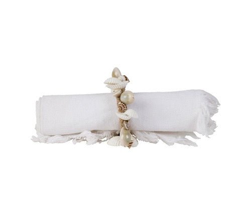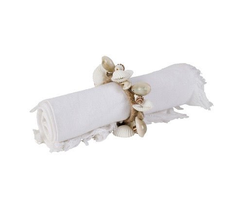 Inspirado en la belleza del mar, este set de 6 servilleteros Costa combina la delicadeza de auténticas conchas marinas con la calidez de la fibra natural trenzada. Una pieza artesanal que aporta un aire costero y relajado a tu mesa, ideal para ambientes mediterráneos, veraniegos o de estilo boho. Cada unidad es única, con detalles que evocan la frescura y textura del océano.