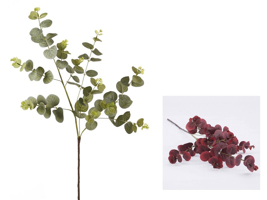 Descubre nuestra colección de flores. Tallo de flor de eucalipto en color burdeos y verde.