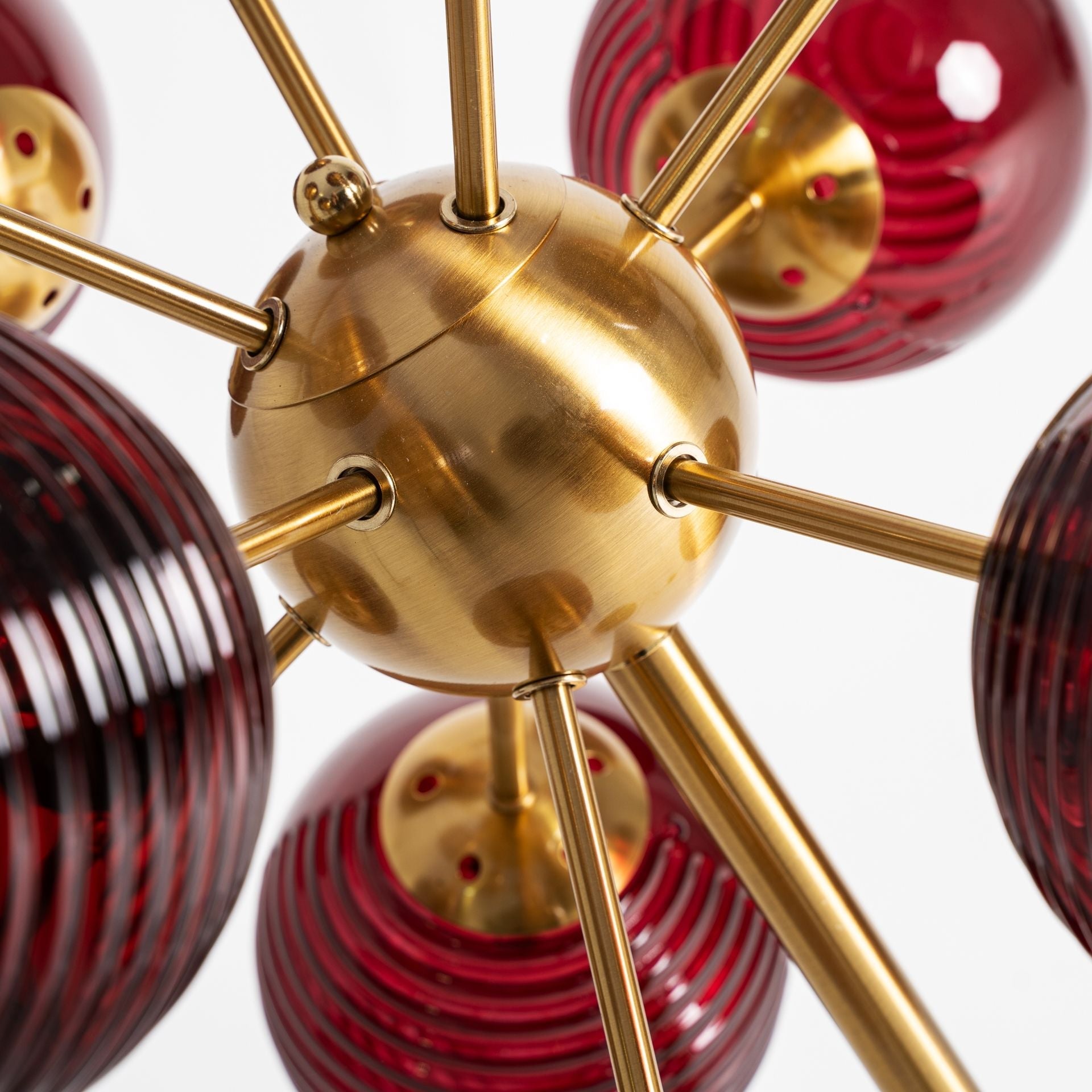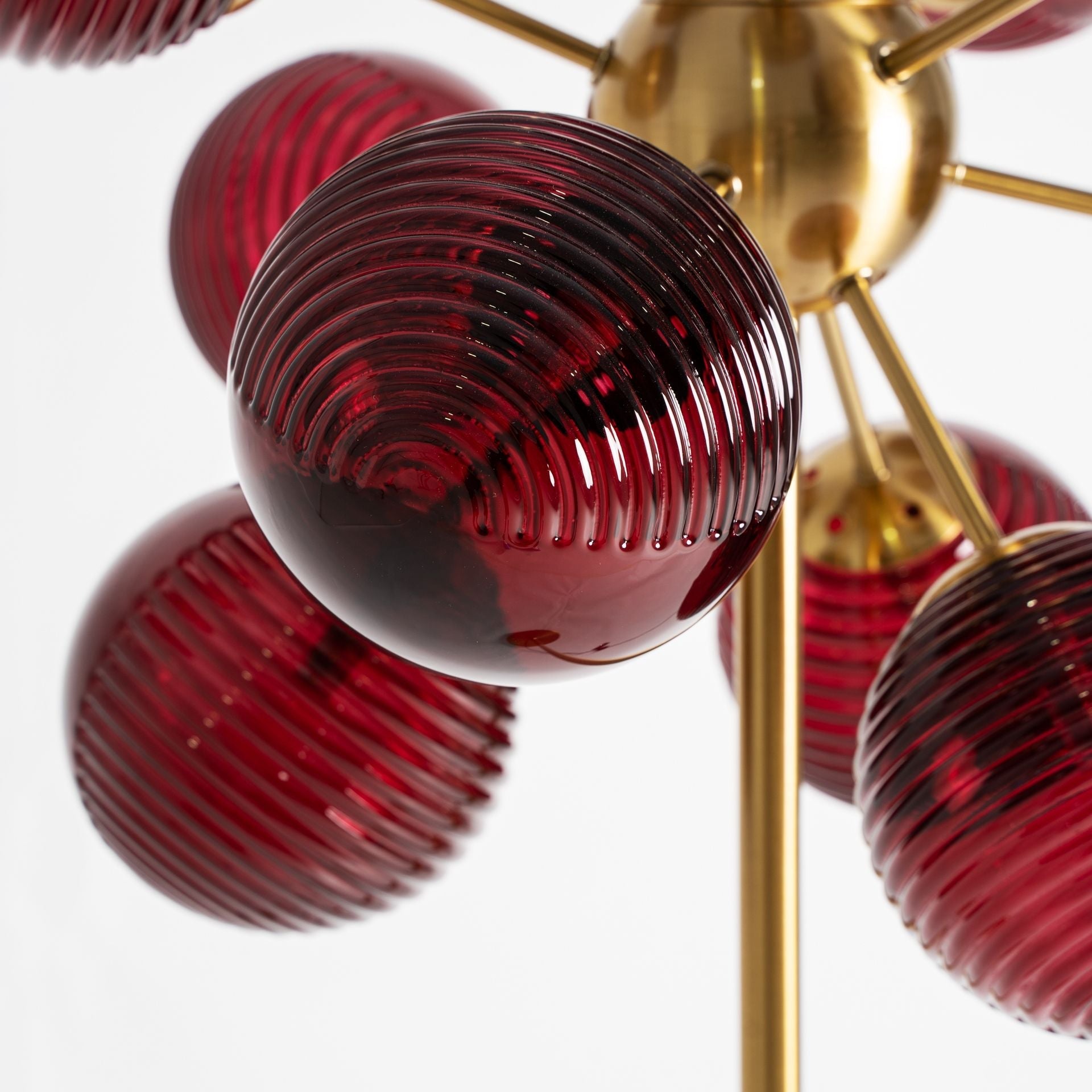 Estos elementos se elevan sobre una base metálica en acabado dorado, que aporta equilibrio, glamour y un toque de lujo contemporáneo. El contraste entre el dorado y el burdeos crea una composición visual elegante y envolvente, ideal para quienes buscan piezas decorativas con presencia y personalidad.