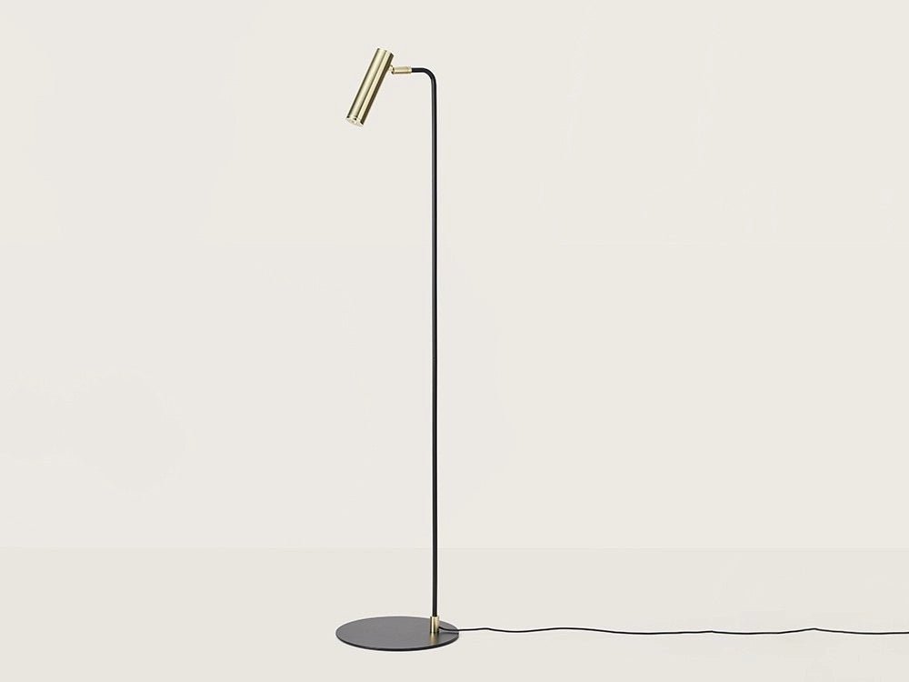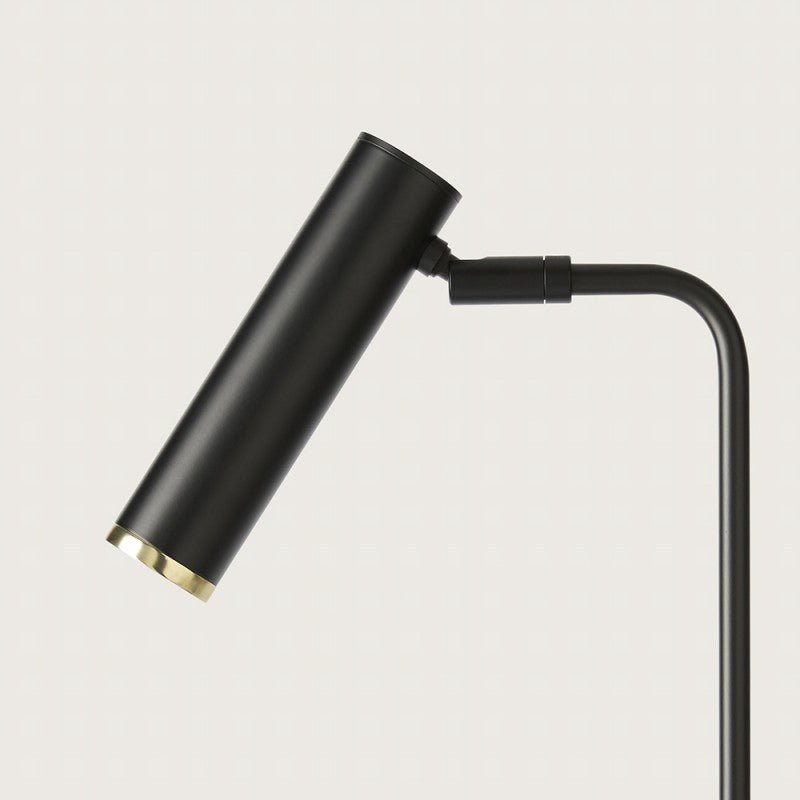 Lámpara de sobremesa de diseño fabricada en acero y acabado disponible en dos colores: negro mate y dorado mate.