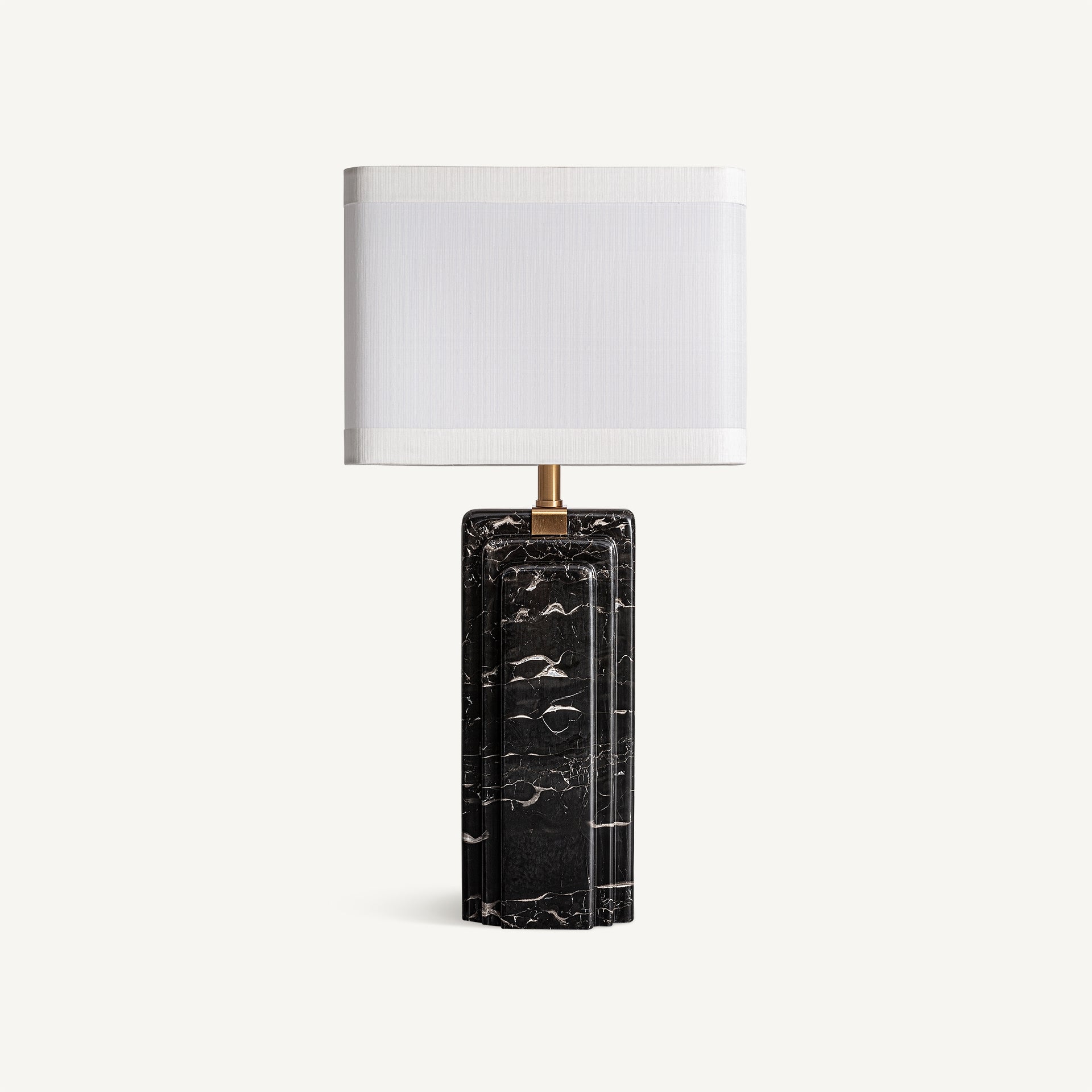 Lámpara de sobremesa en color negra de estilo fabricado en hierro combinado con mármol.