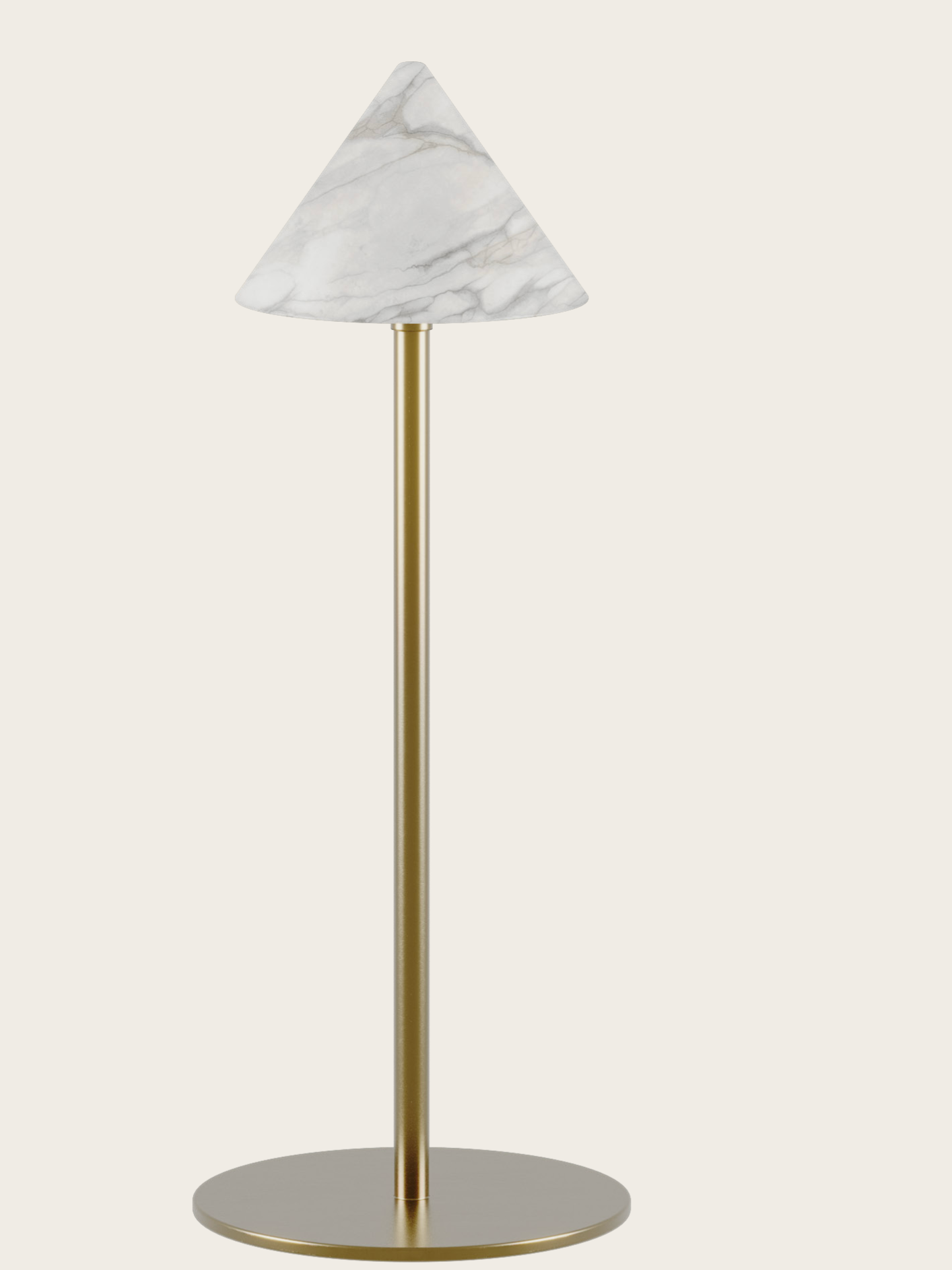 Lámpara de sobremesa de diseño, fabricada en metal y pantalla cónica de mármol. Esta lámpara de mesa es perfecta para cualquier estancia de tu hogar.