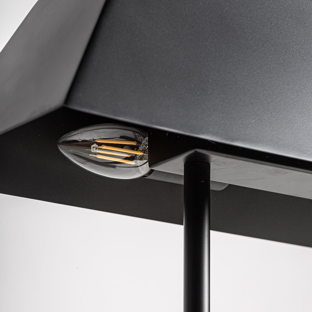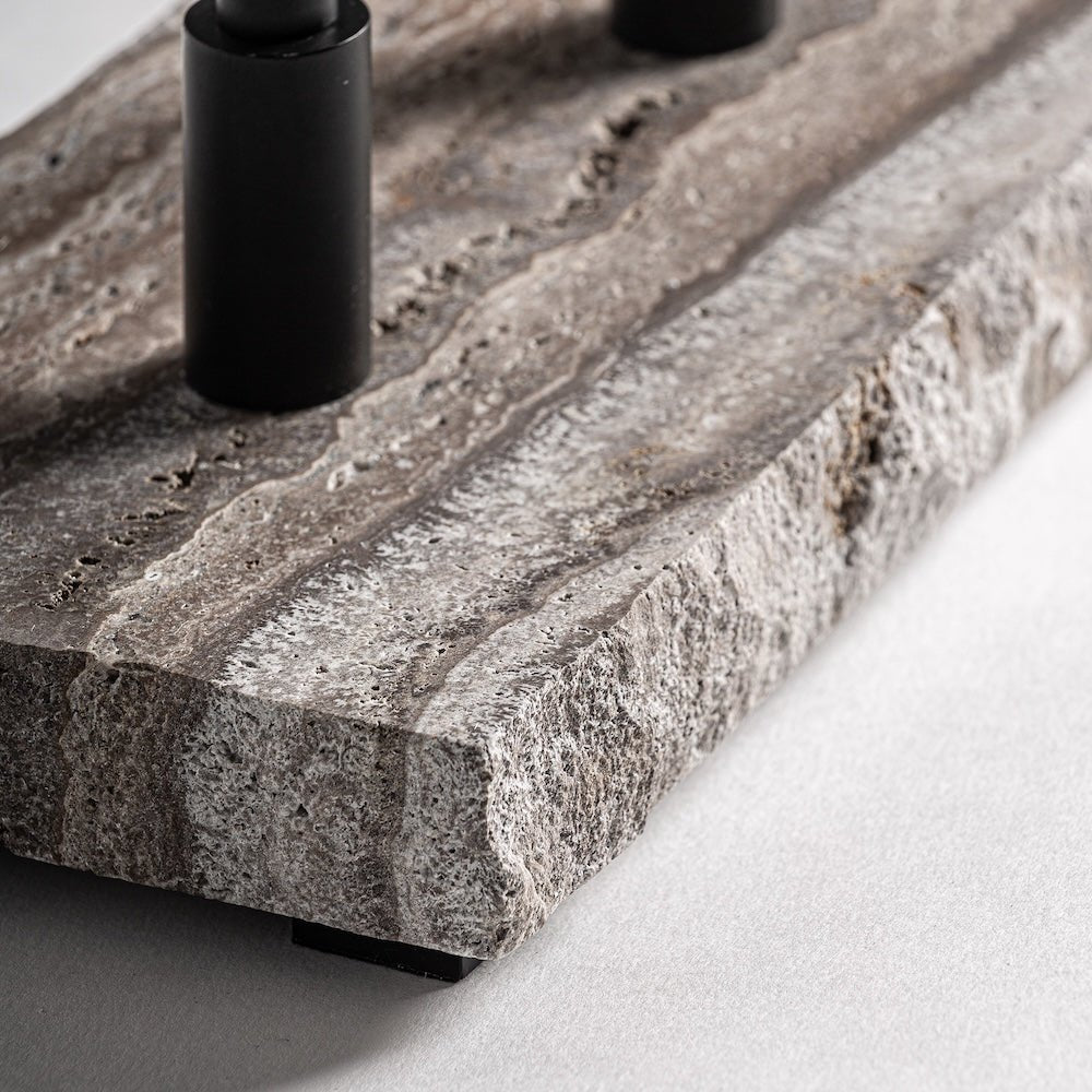 Lámpara de sobremesa, fabricado en mármol en color gris, combinado con metal en color negro con acabado mate.