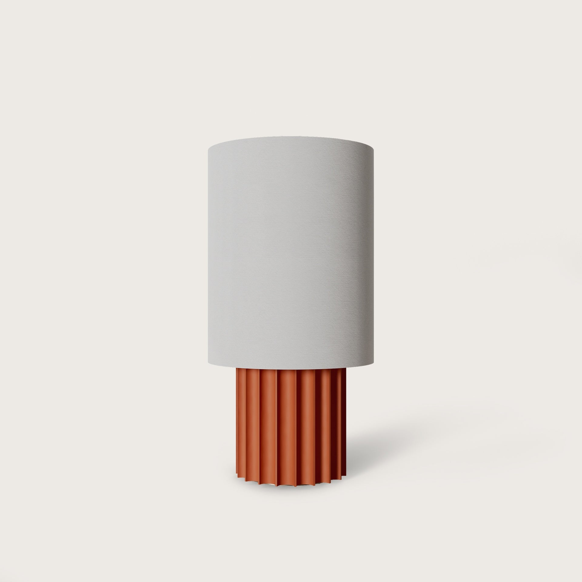 Lámpara de sobremesa de diseño fabricada en cerámica y metal. La base es cilíndrica y acanalada y se puede acabar en una gran variedad de colores, te mostramos la paleta en las imágenes. Lo que más llama la atención es su original diseño. Ideal para colocar como luz auxiliar en salones de diseño actual, o bien como lámpara de mesilla en dormitorios.