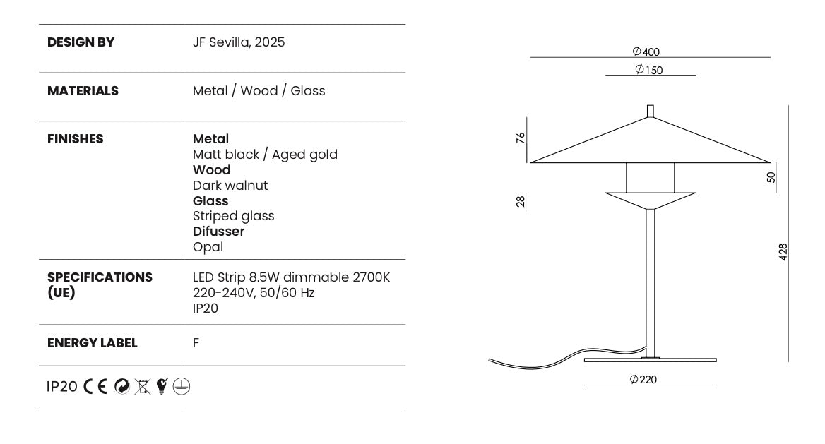 Ideal para mesillas, escritorios o mesas auxiliares, esta lámpara aporta un toque decorativo y una iluminación ambiental cálida y equilibrada.