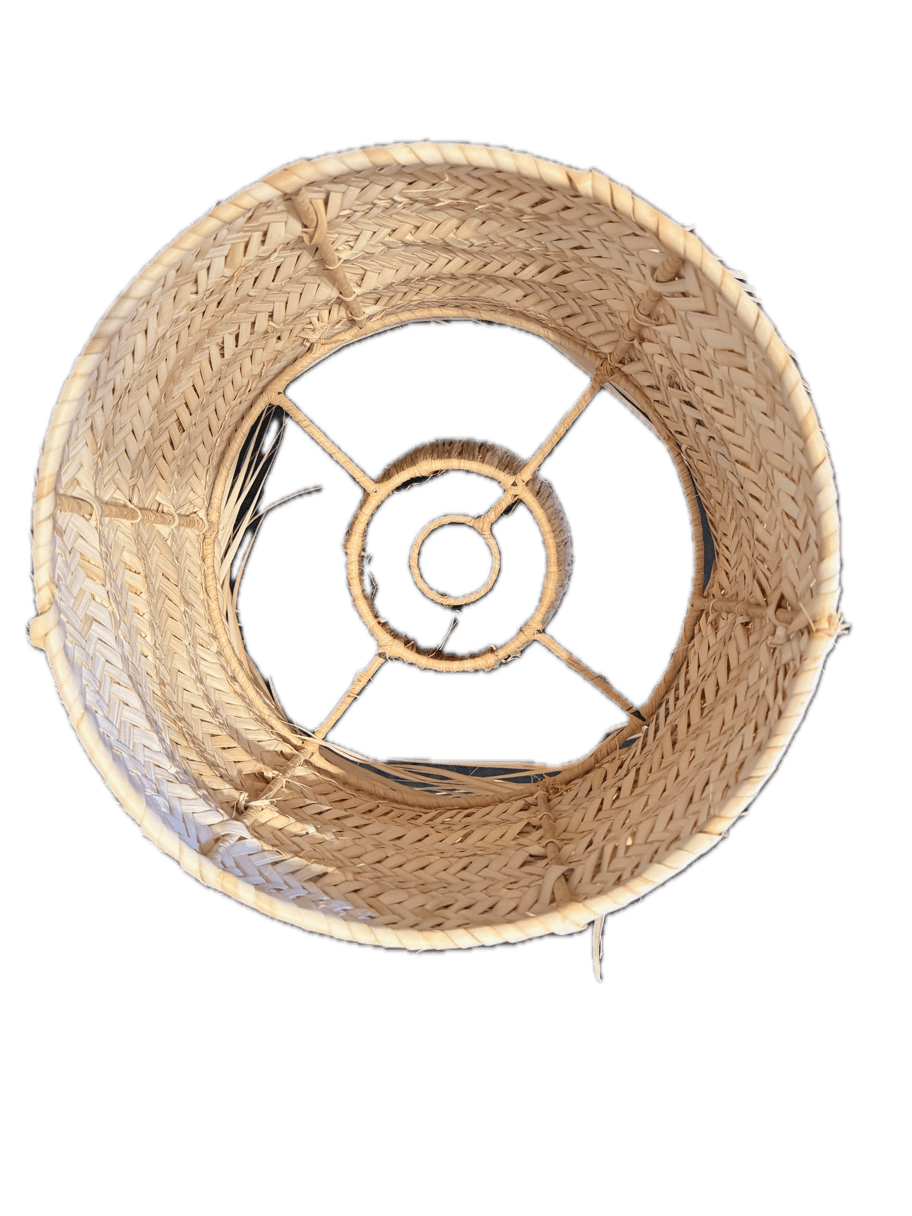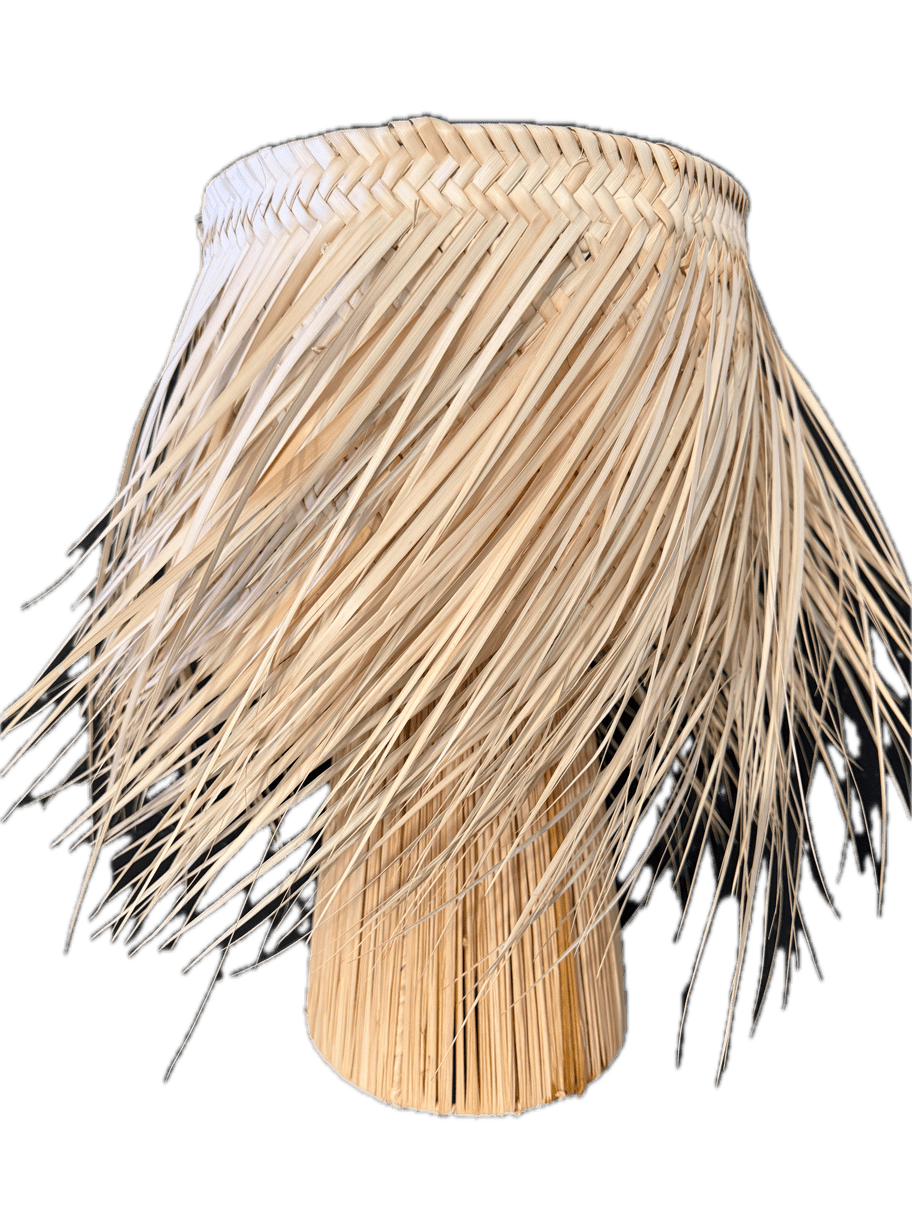 Maravillosa lámpara de sobremesa fabricada en fibra natural color natural. Debido a su fabricación artesanal es posible variaciones en el color, en el tamaño y en la forma que lo hace una pieza única y con encanto.