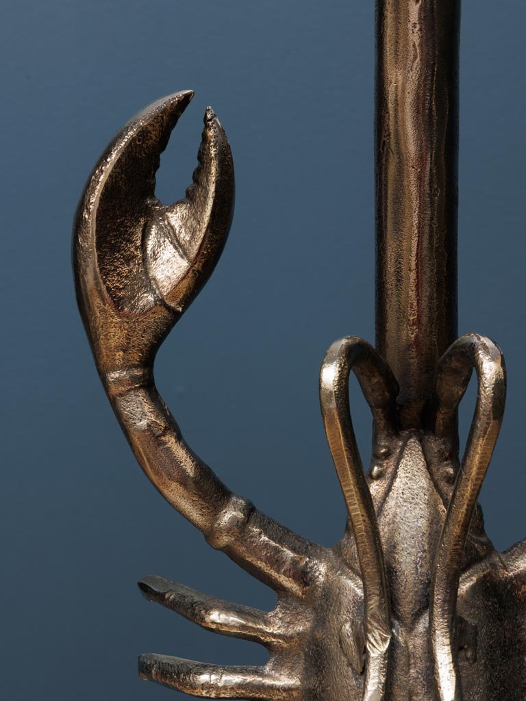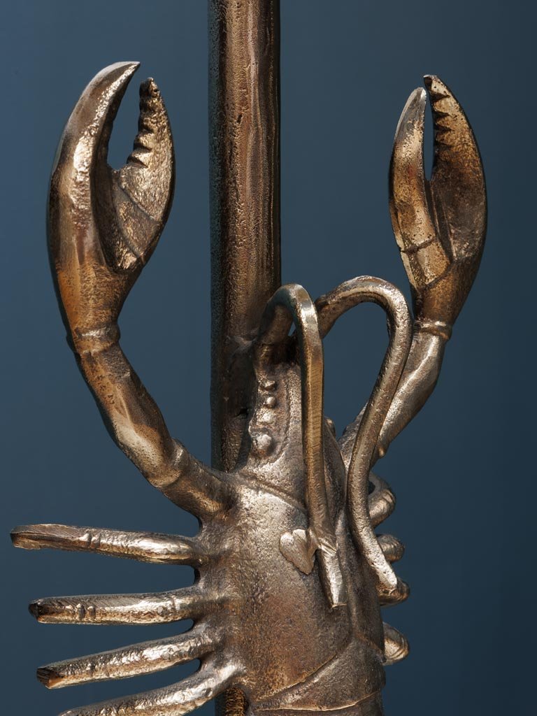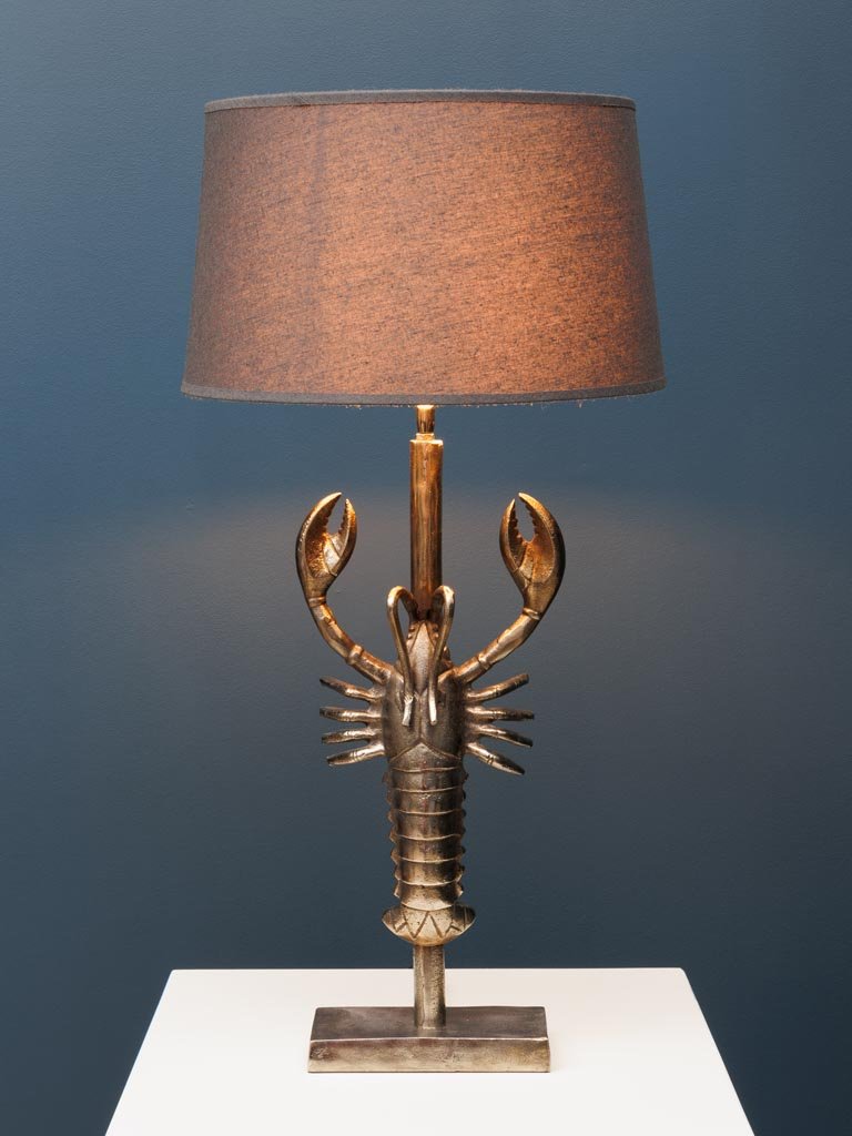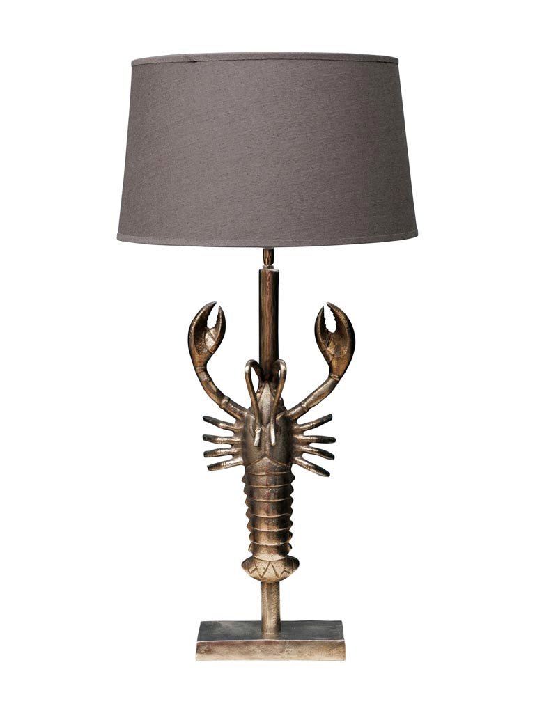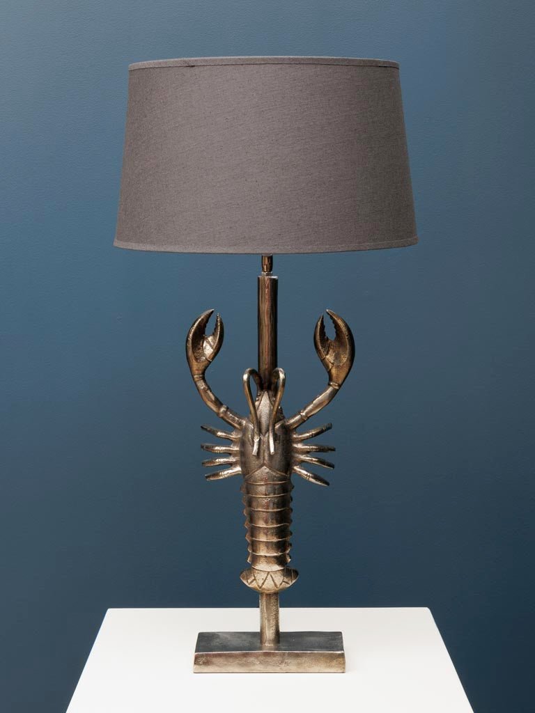 Lámpara de sobremesa con motivo de langosta plateada. Pantalla de lino de color gris oscuro incluida.
