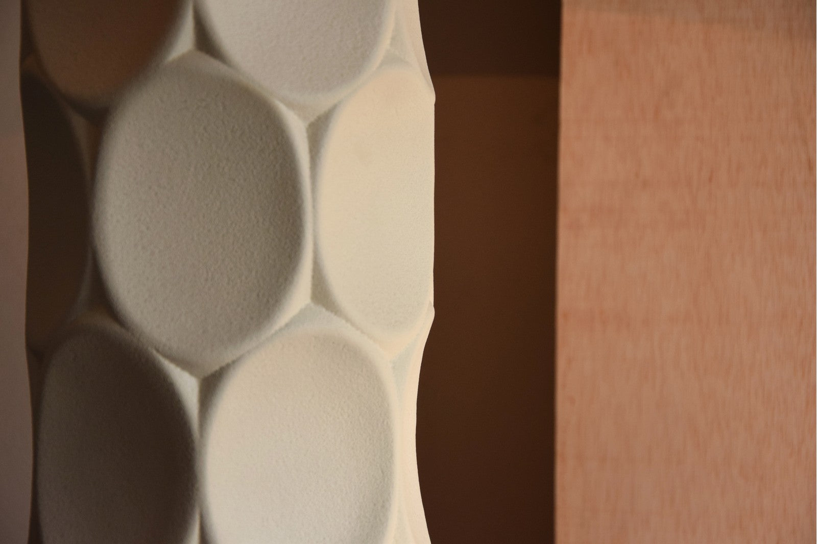 • Diseño artesanal: pieza realizada en cerámica blanca mate con textura rugosa al tacto, que hace que cada lámpara sea única y ligeramente distinta en acabado.