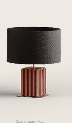 Los acabados del metal pueden elegirse en varios colores diferentes y la base de cerámica debe ser de alguno de los colores de la paleta. Si quiere algún color diferente a los de la paleta también podrá personalizar la lámpara.