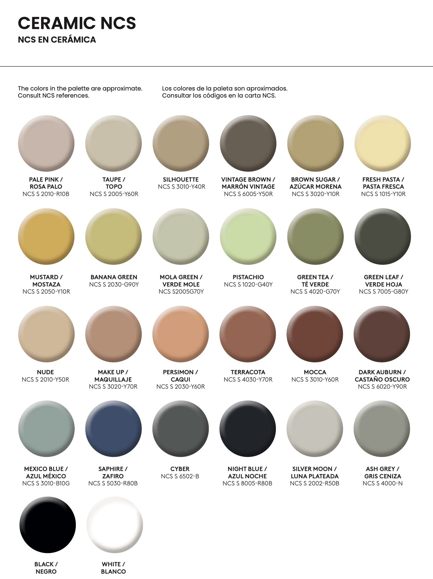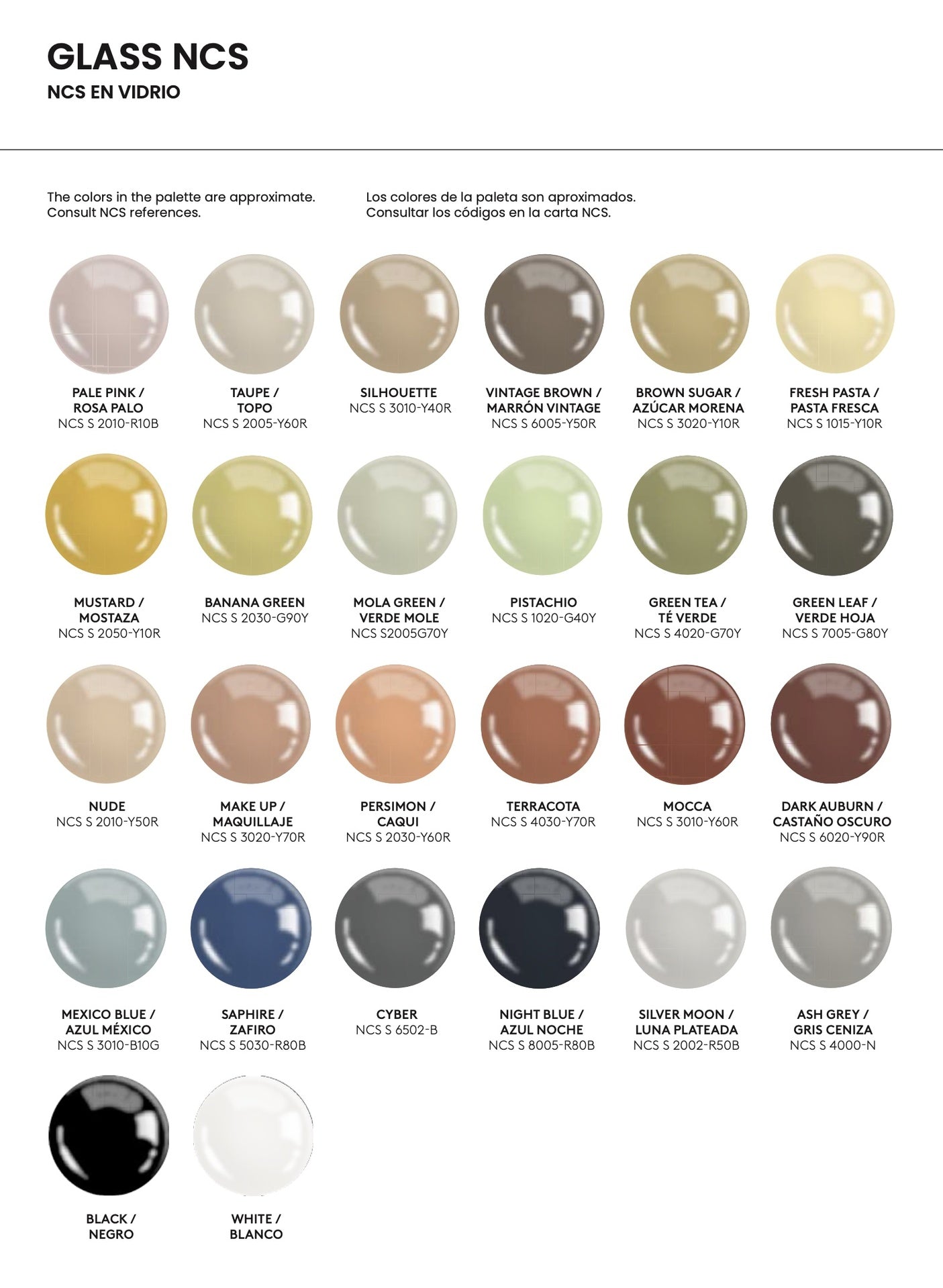 El color de la cerámica (parte superior) y del cristal (parte inferior) debe elegirse de las paletas que pueden ver en las fotografías adjuntas y deben comentarlo en el apartado "Notas" durante el proceso de compra o posteriormente por email.