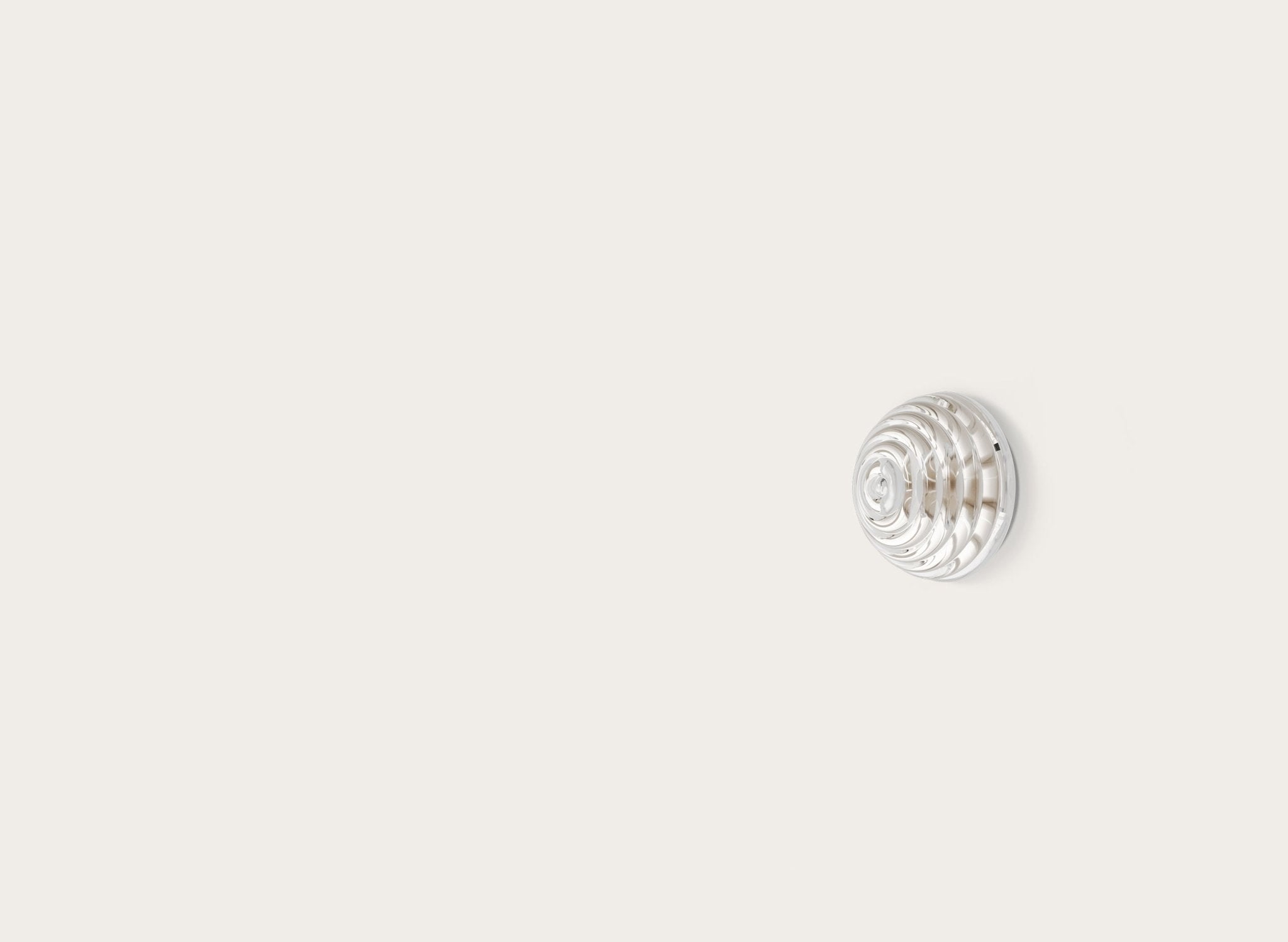 Aplique de pared, que también sirve como foco de superficie, acabado en cuerpo de oro envejecido y cristal óptico rayado.