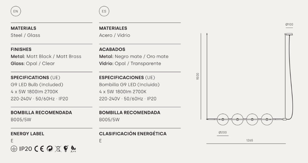 Bombilla: 4 x G9 5W 2700K (incluidas)