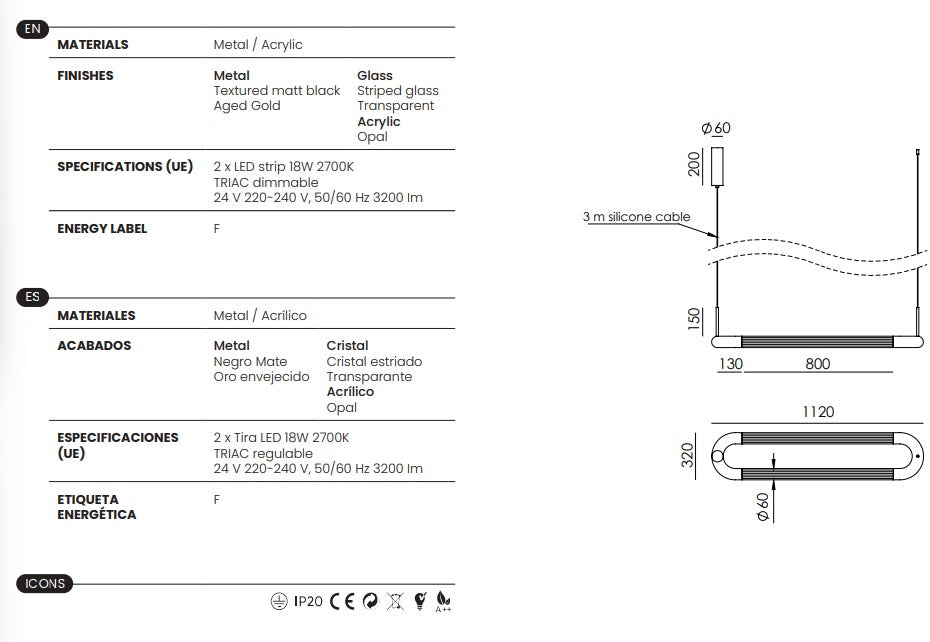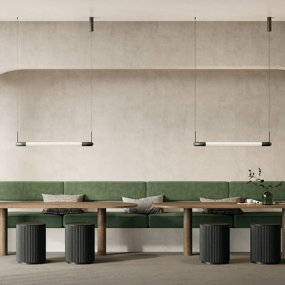 Diseño: Lámpara colgante de líneas limpias y contemporáneas, ideal tanto para proyectos residenciales como contract.