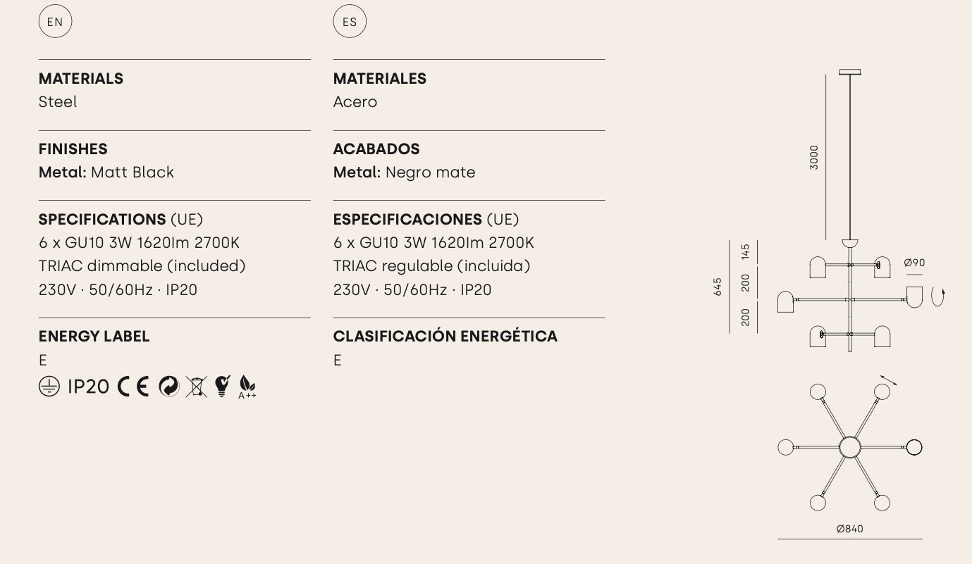 Tipo de lámpara: Colgante