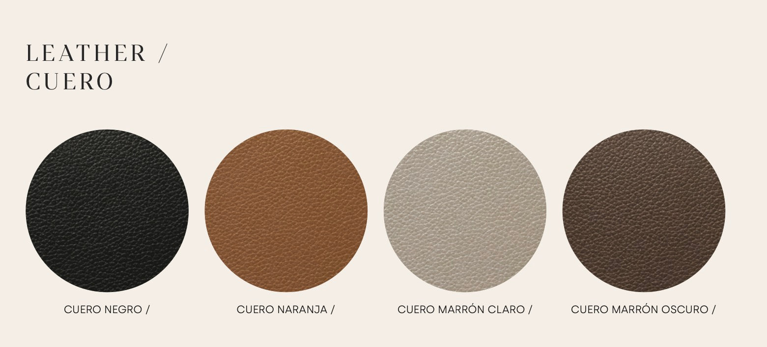 Lámpara de techo de diseño fabricada con el cuerpo en color negro mate y las cabezas de cuero en varios colores ó en oro envejecido estriado.