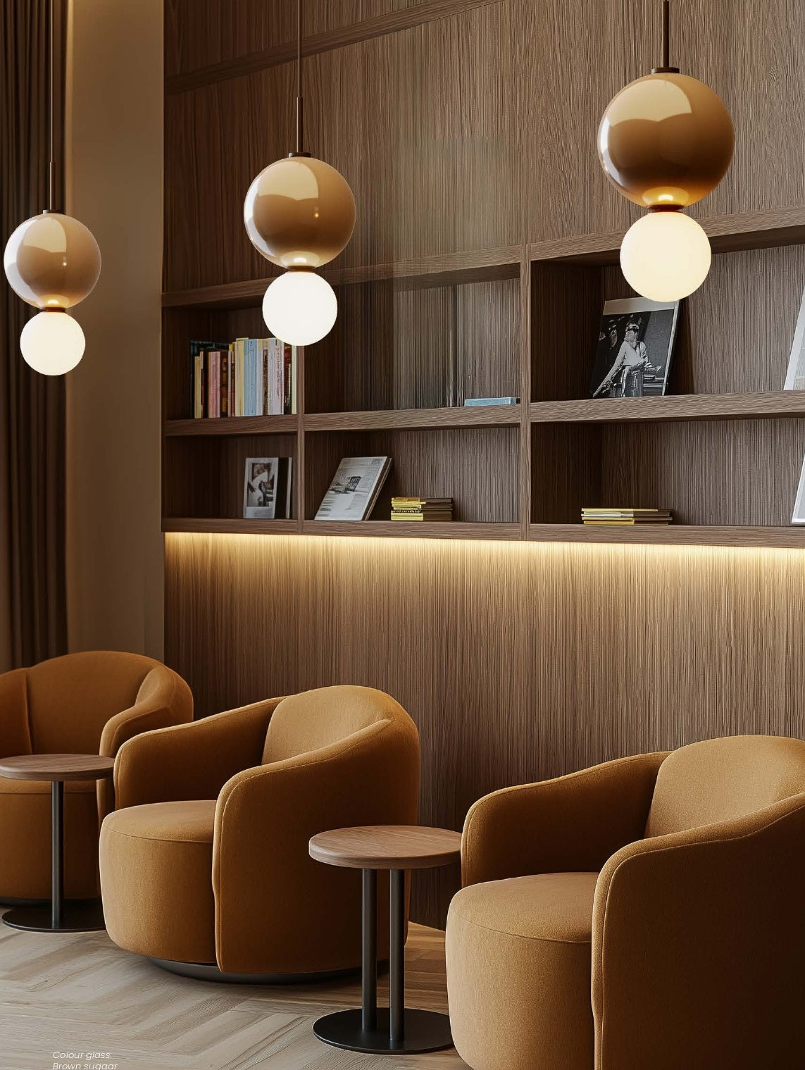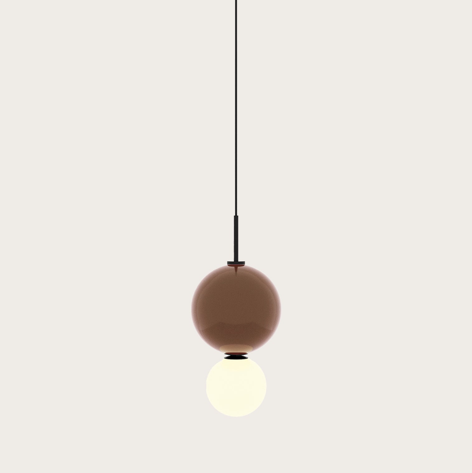 El cuerpo de cristal está disponible en distintos colores de la paleta, permitiendo personalizar la lámpara según el estilo del ambiente.