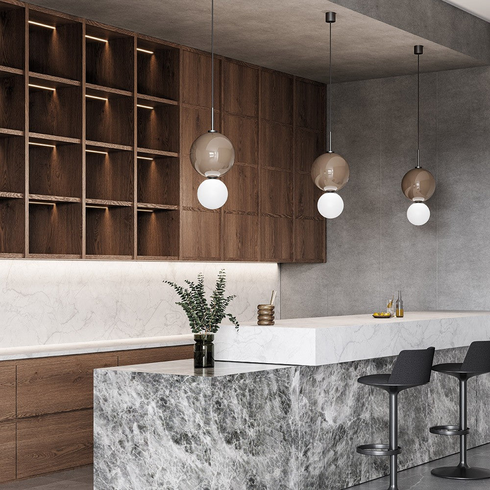 La lámpara colgante Ulon destaca por su diseño contemporáneo y elegante, combinando la sobriedad del metal con la ligereza visual del cristal. Es una pieza versátil pensada para aportar una iluminación decorativa y cálida en espacios residenciales o comerciales.