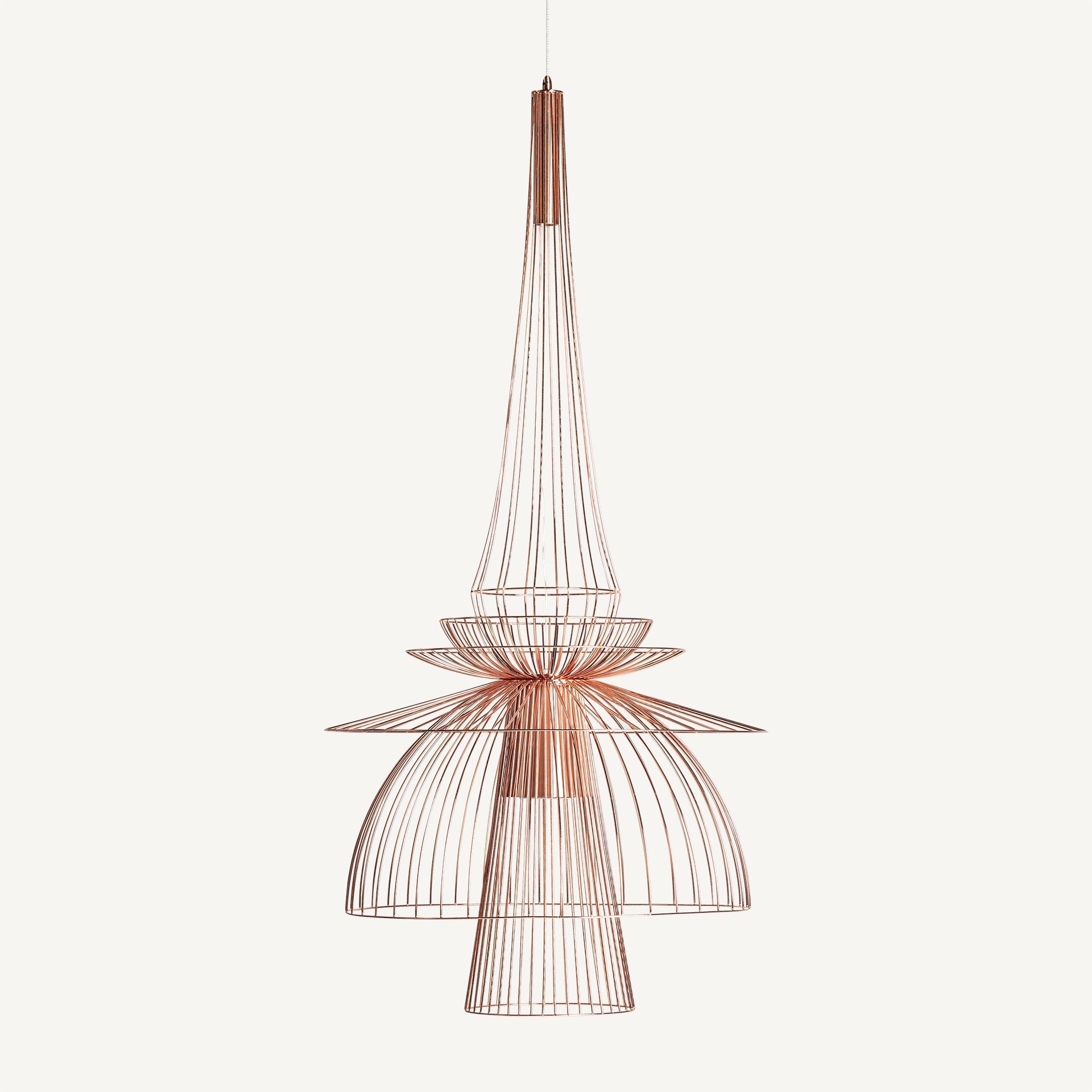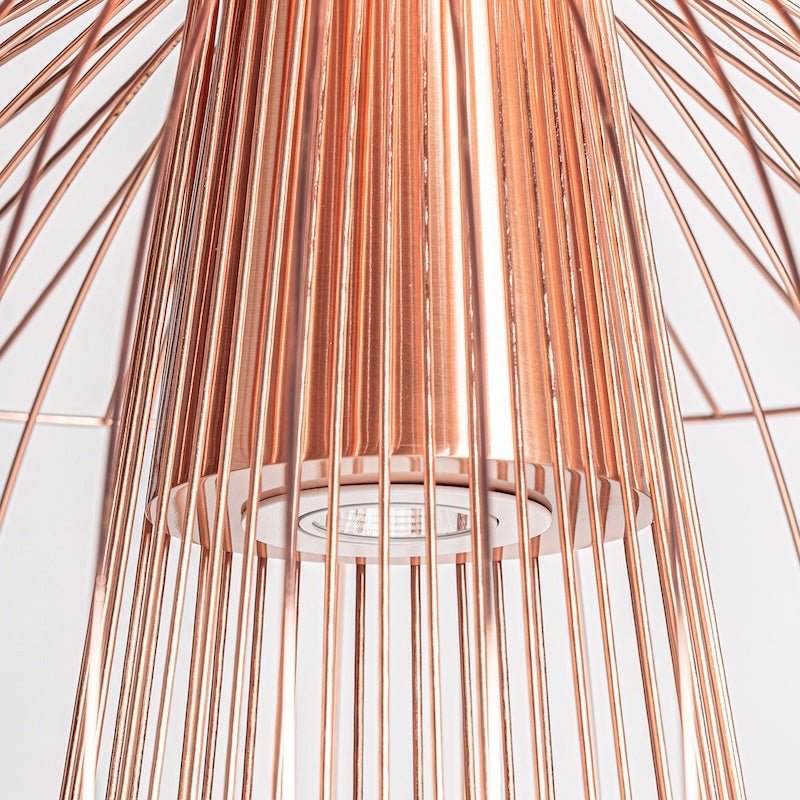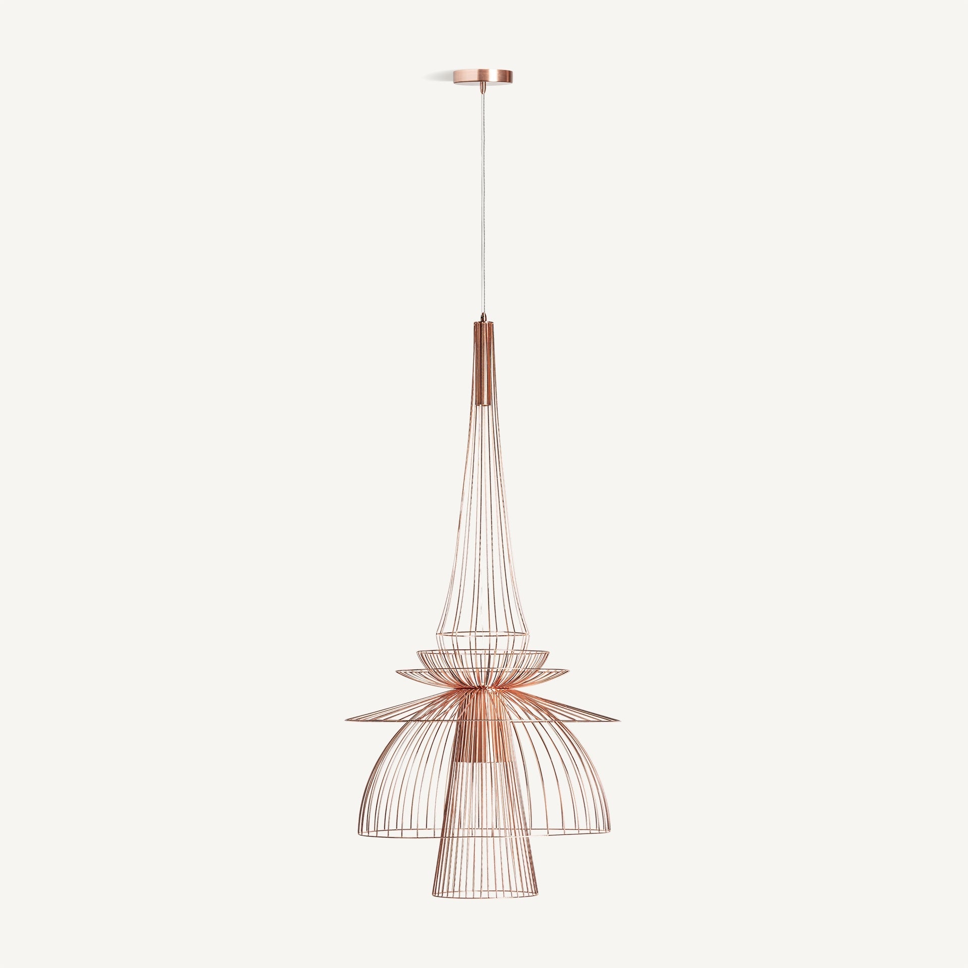 Lámpara de colgar de estilo art deco, fabricado en hierro en color cobre.