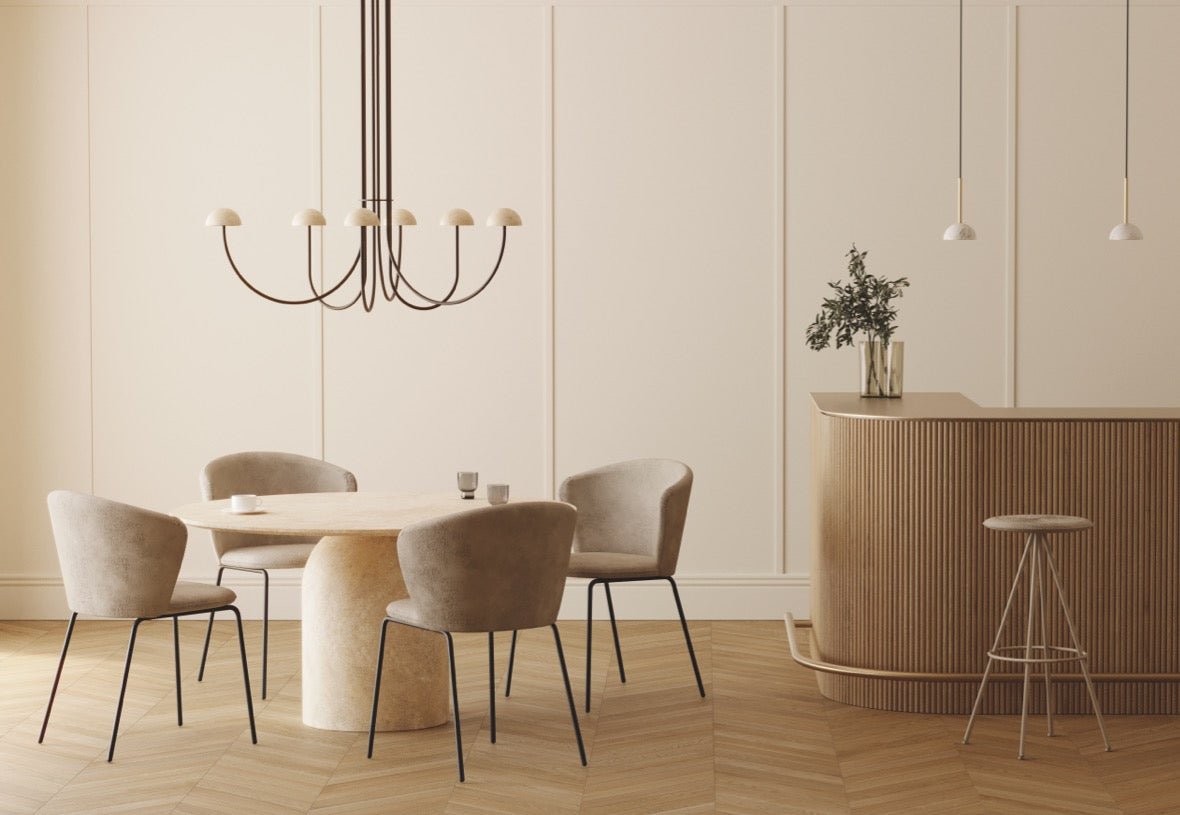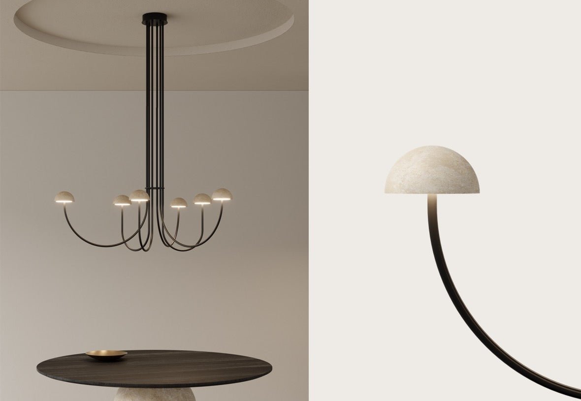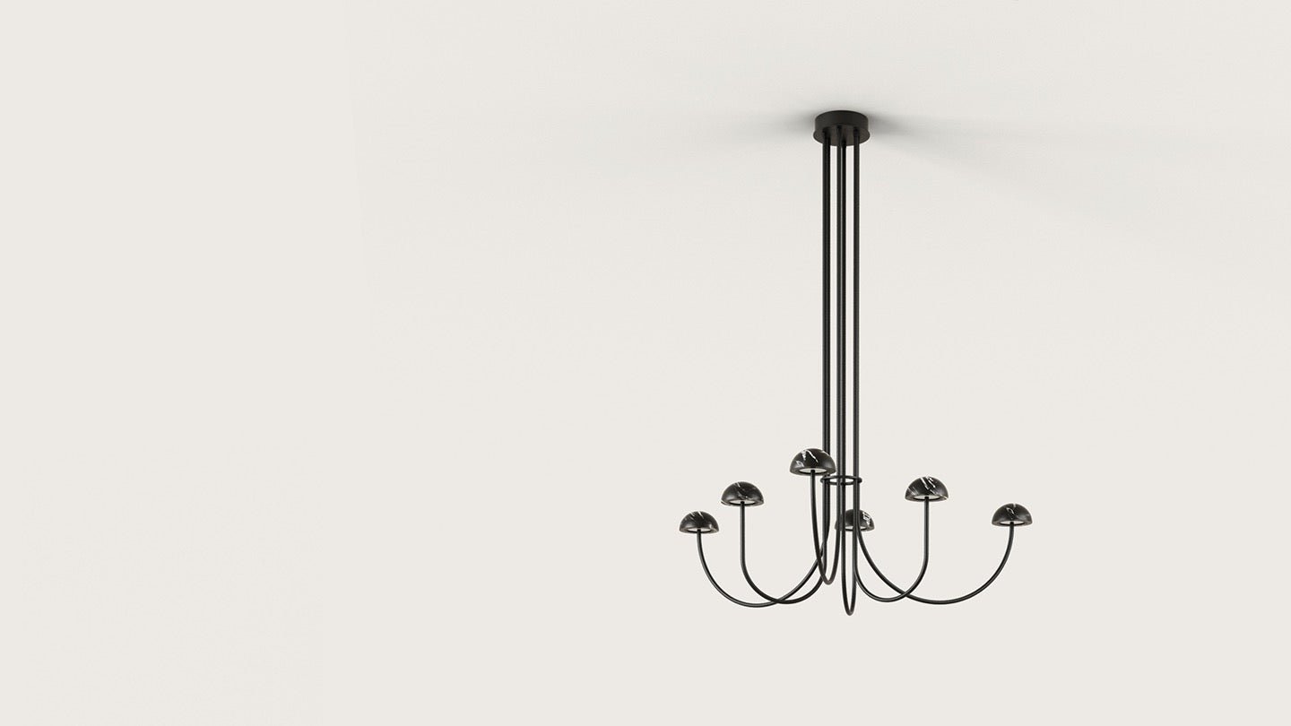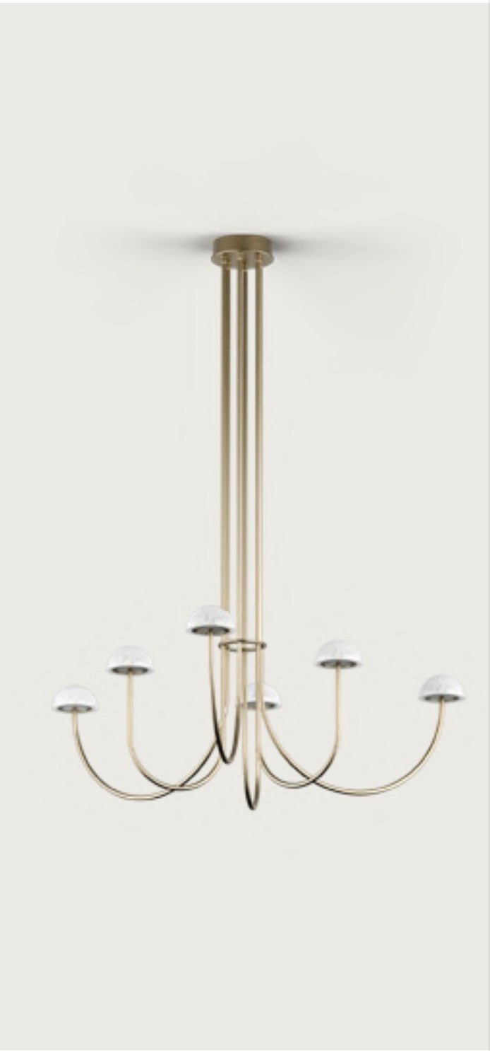 Lámpara de techo de diseño moderno y líneas sencillas con forma de araña fabricada en metal y mármol. Regulador por sistema 'Dali-Push'.