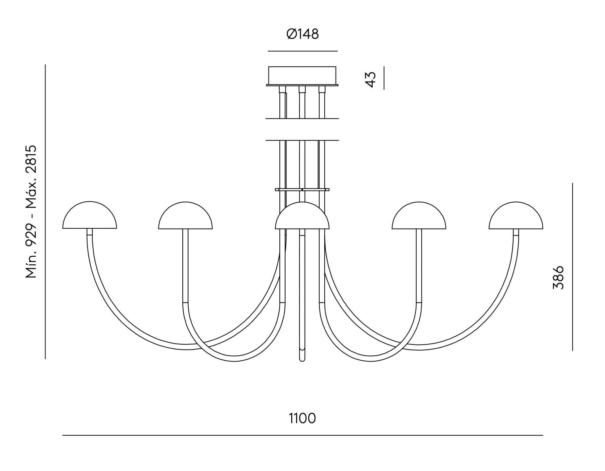 Diámetro: Ø14,8 cm. Ancho: 110 cm. Alto: 42,9 cm