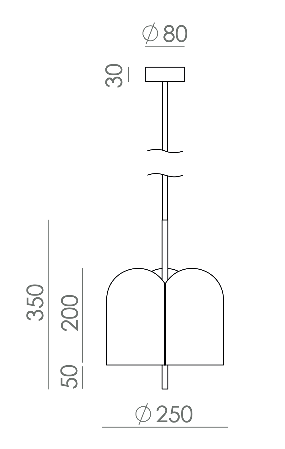 Diámetro: Ø25 cm. Alto: Máximo 338 cm