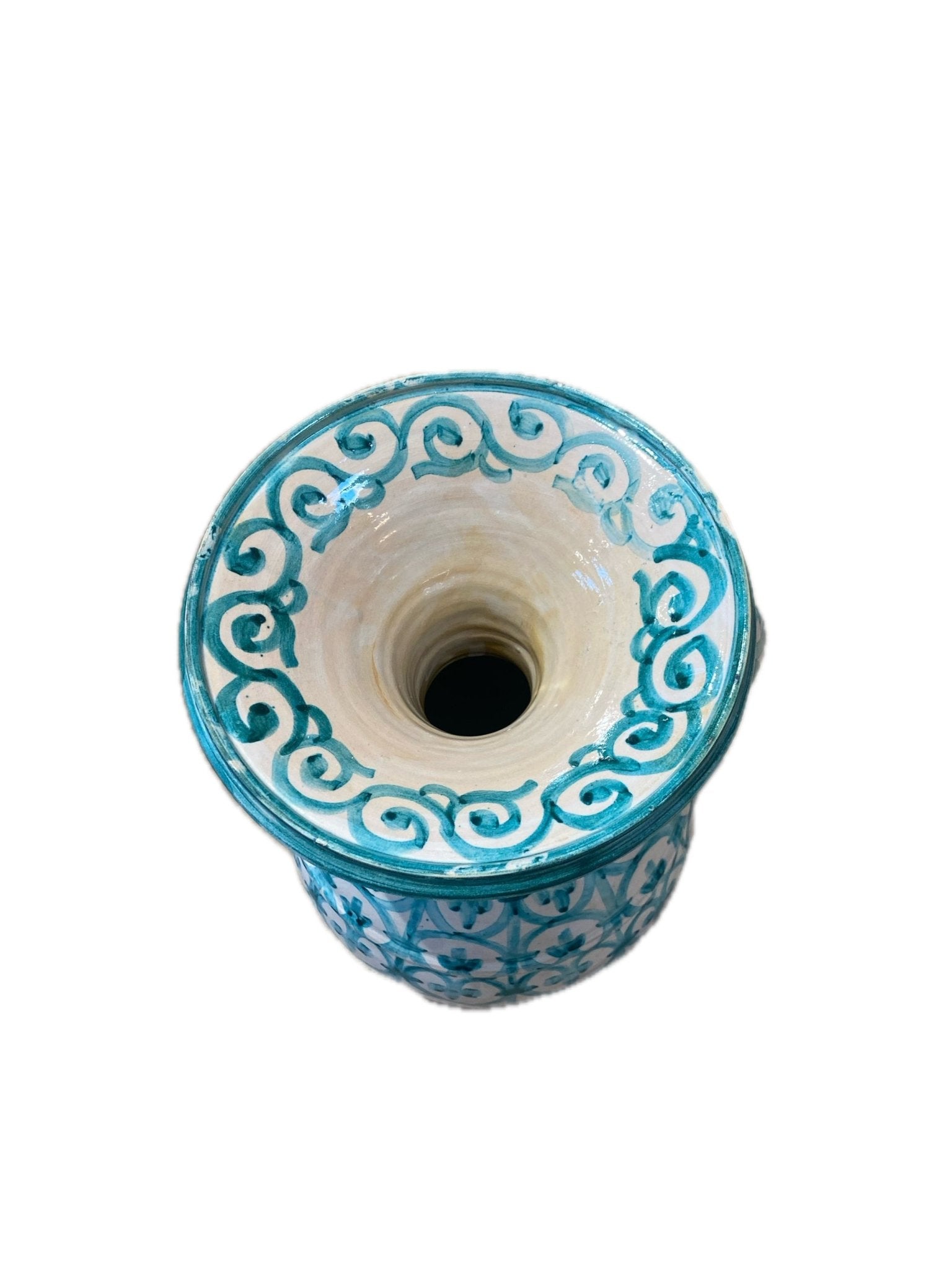 Cada una de nuestras piezas de Fajalauza es el resultado de un proceso artesanal con raíces granadinas y marroquíes, donde cada jarrón se modela, decora y esmalta completamente a mano. Por ello, ninguna pieza es perfecta ni idéntica a otra: pueden observarse leves irregularidades en la pintura, pequeñas asimetrías, variaciones en el tono o zonas con distinto grosor de esmalte.