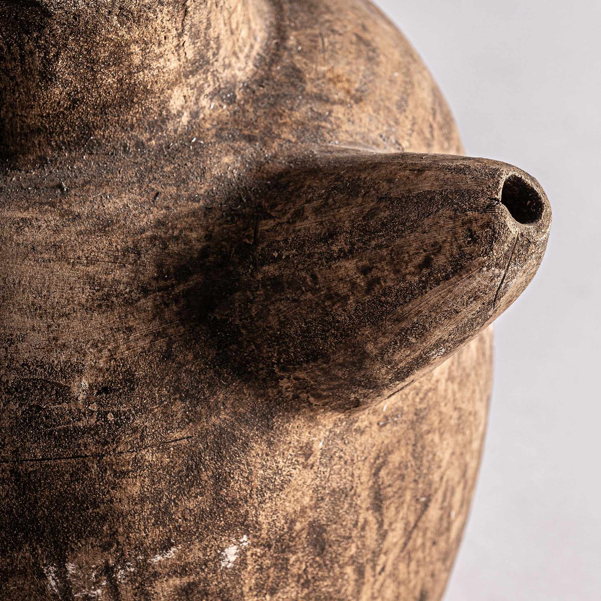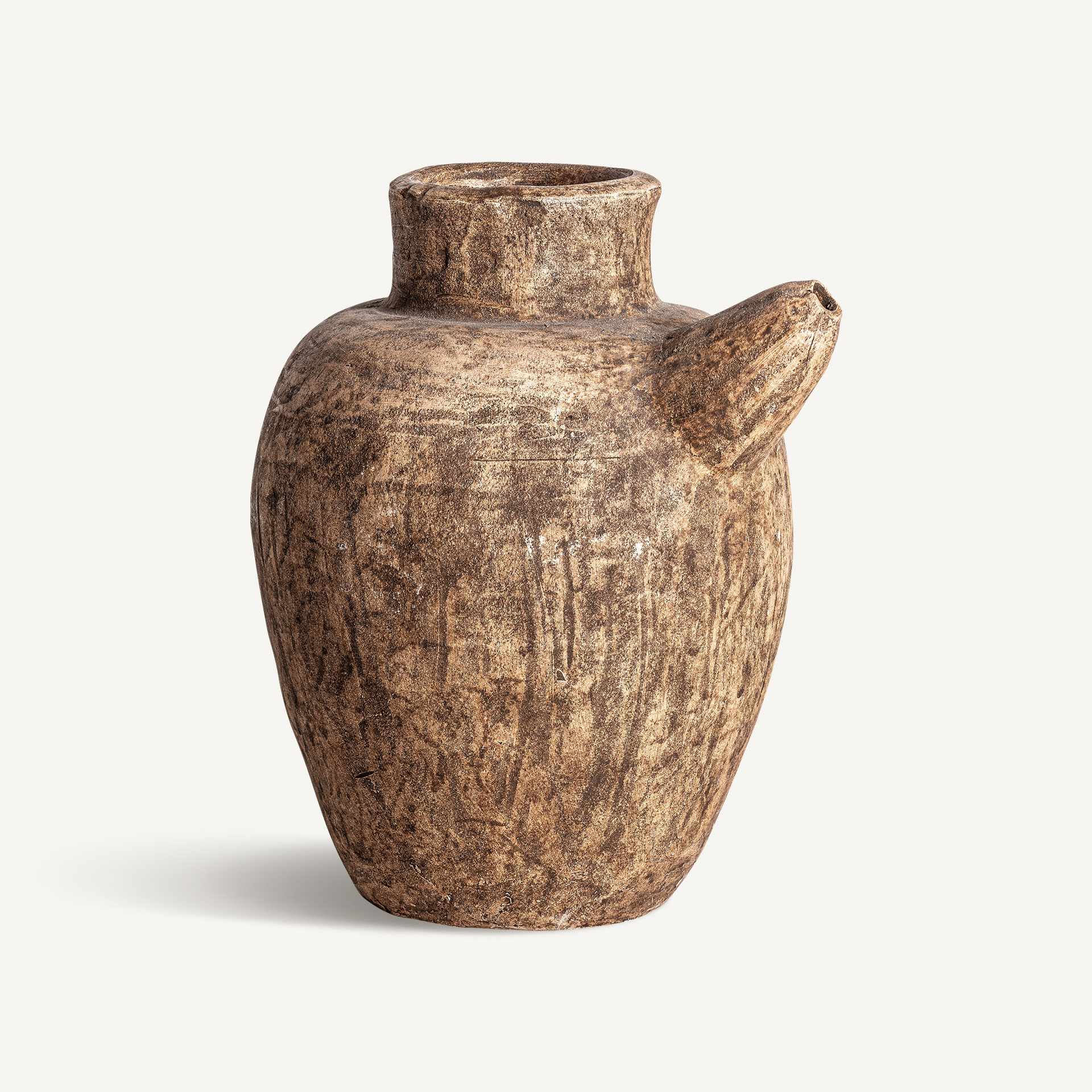 Cada línea, cada irregularidad en su superficie, cada matiz de su pátina desgastada es un guiño a las antiguas piezas de alfarería tradicional, reinterpretadas con un enfoque contemporáneo. Su acabado envejecido ha sido cuidadosamente trabajado para simular el paso natural de los años, logrando un efecto visual lleno de profundidad y personalidad.