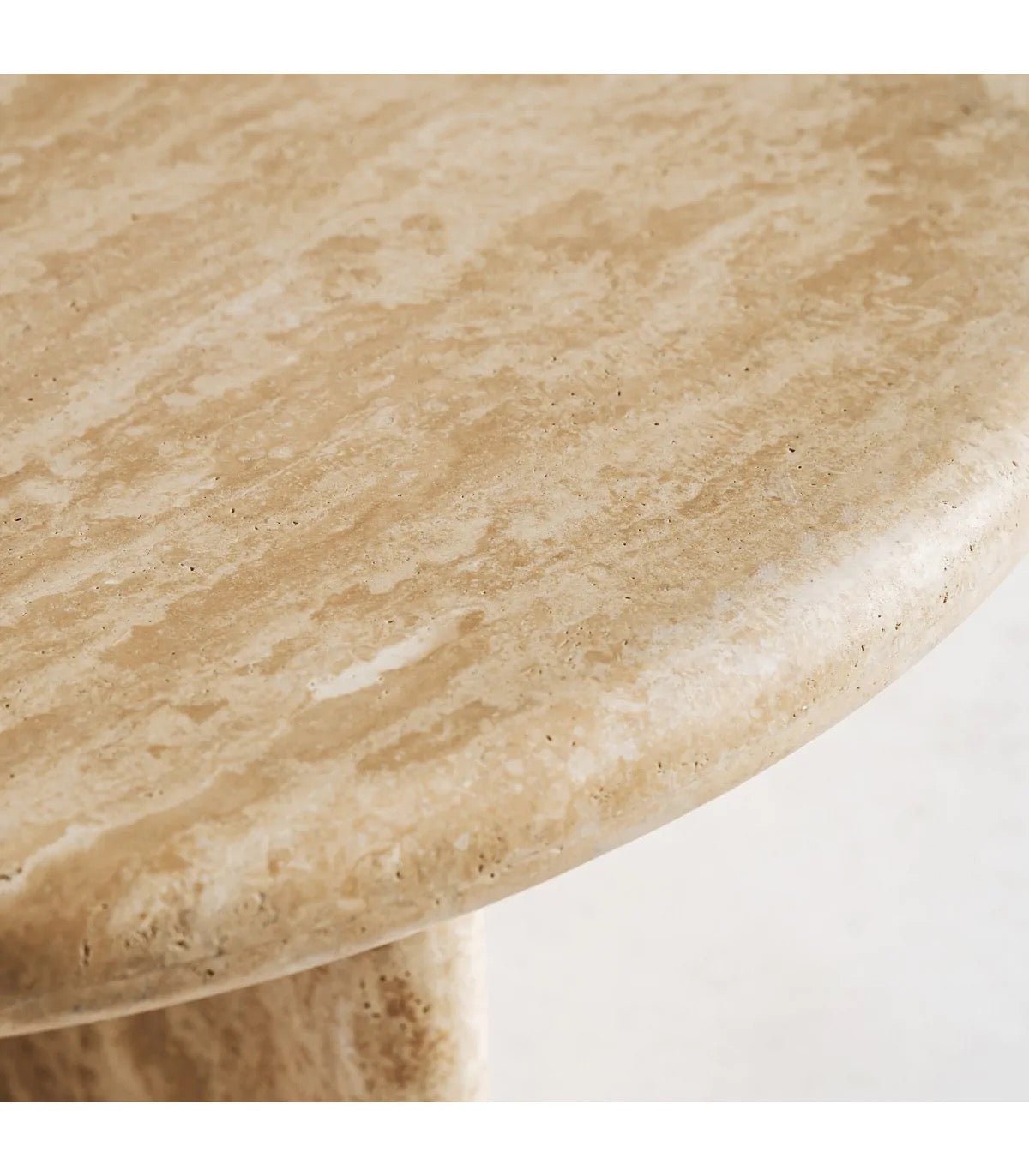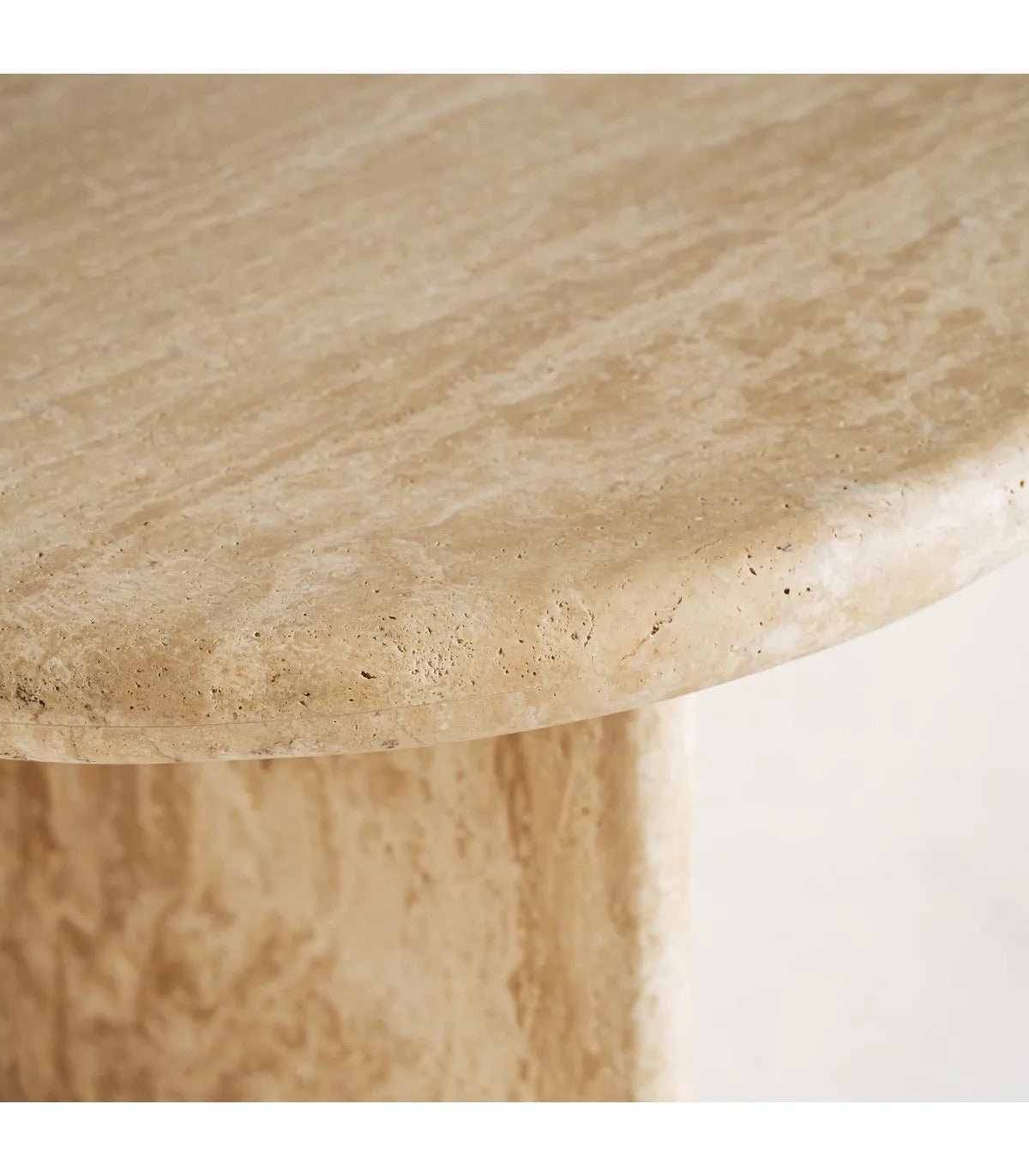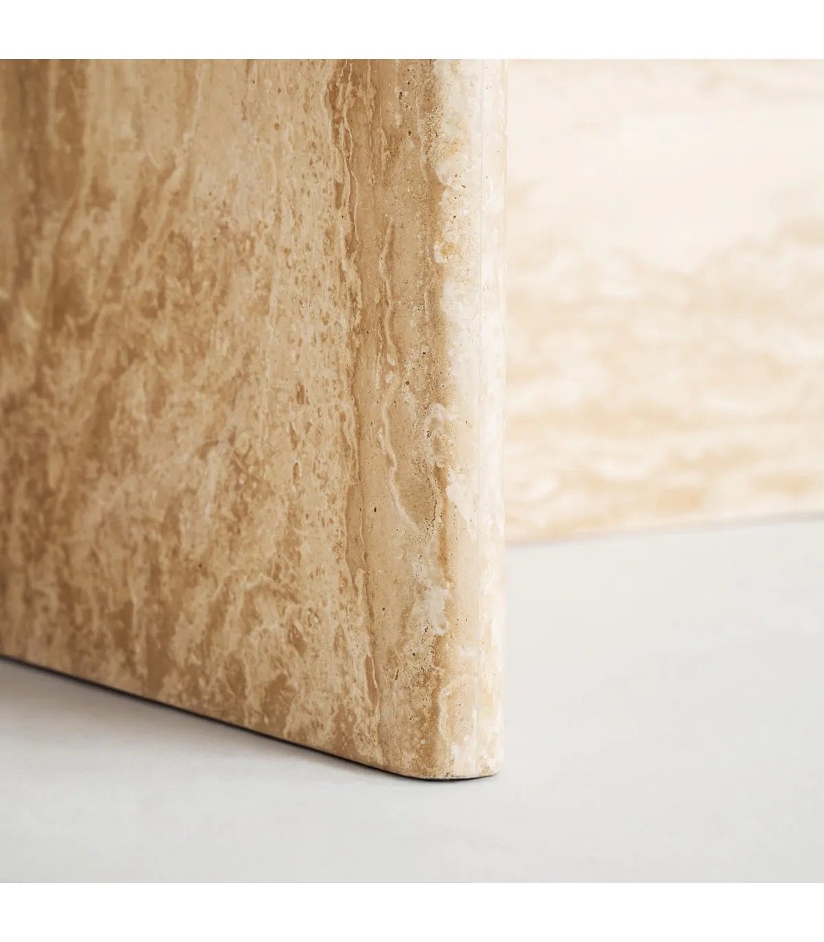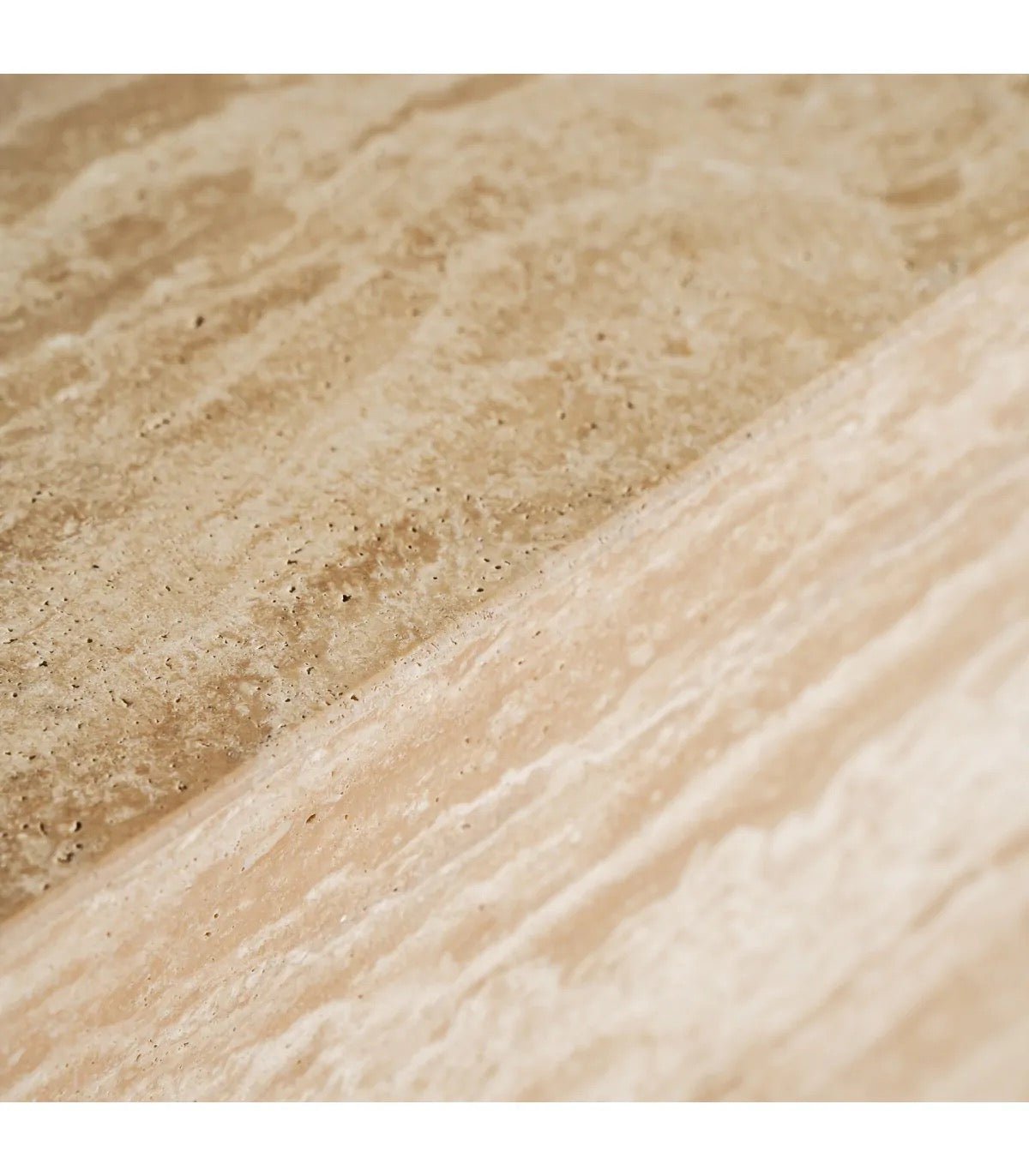 Juego de 2 mesas de centro de estilo art deco, fabricado en travertino en color marrón claro.