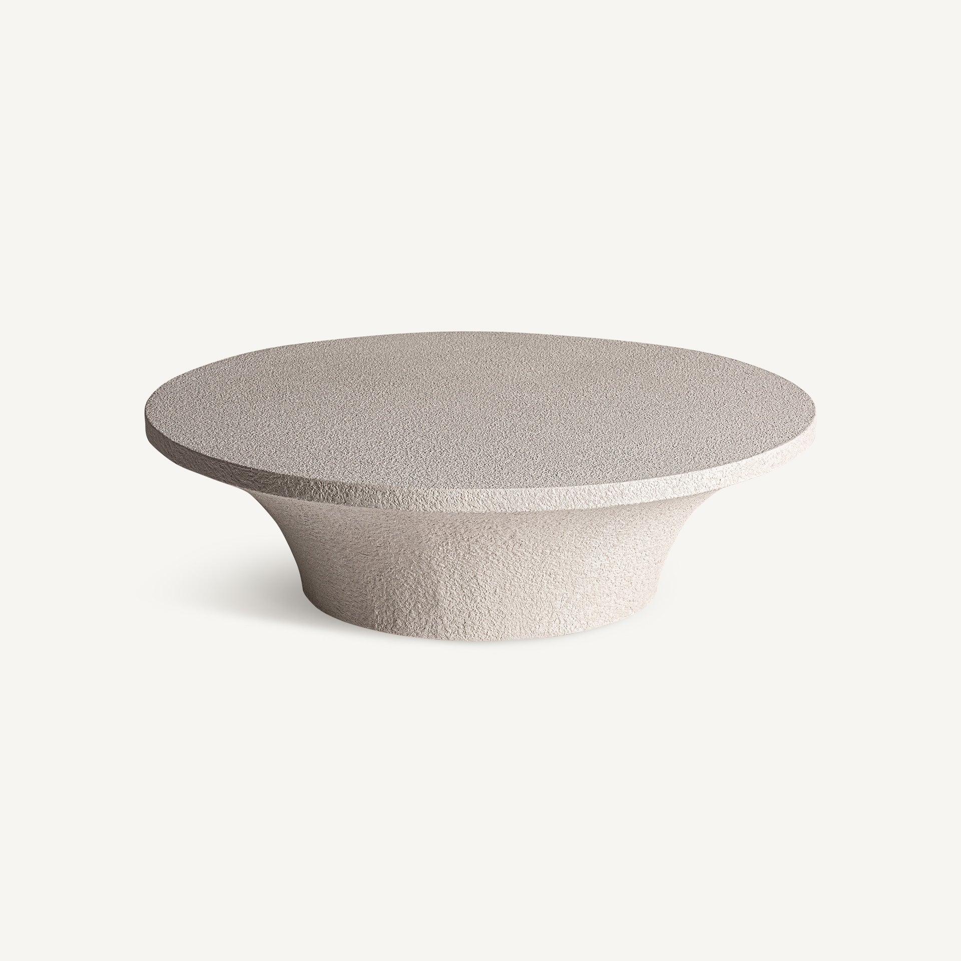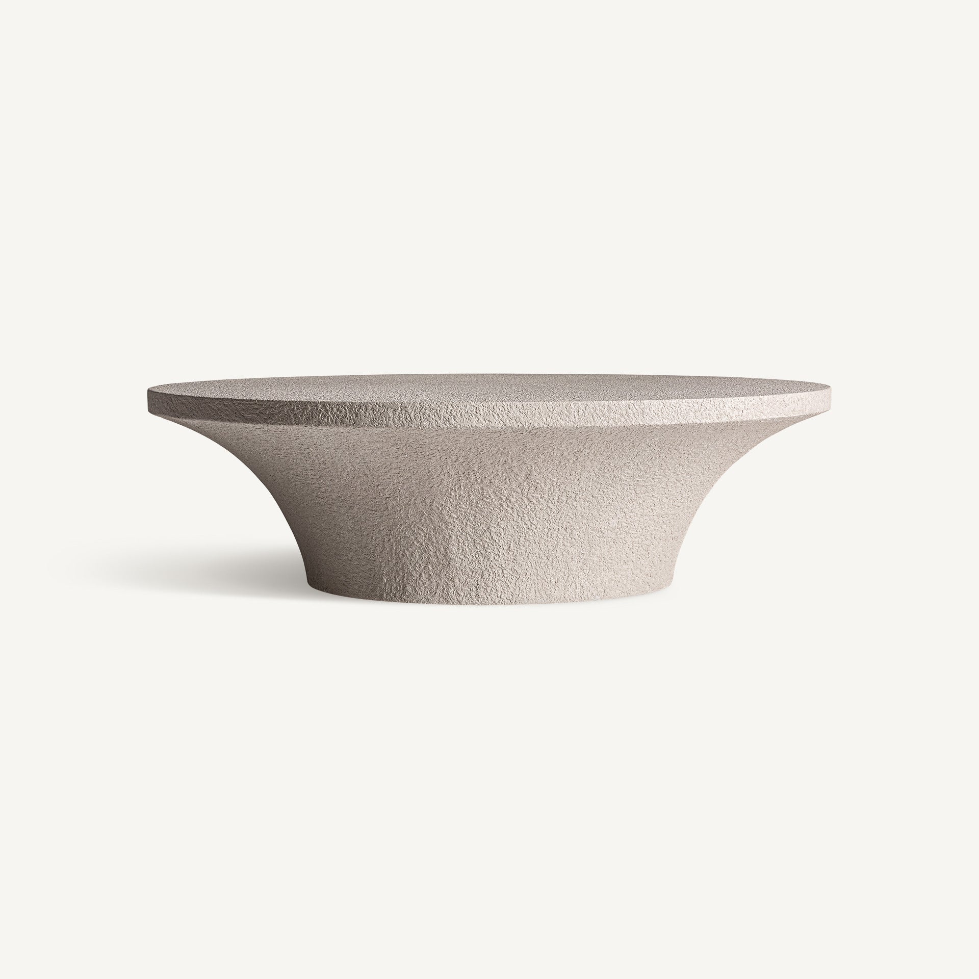 Mesa de centro de estilo contemporáneo, fabricado en cemento en color beige.