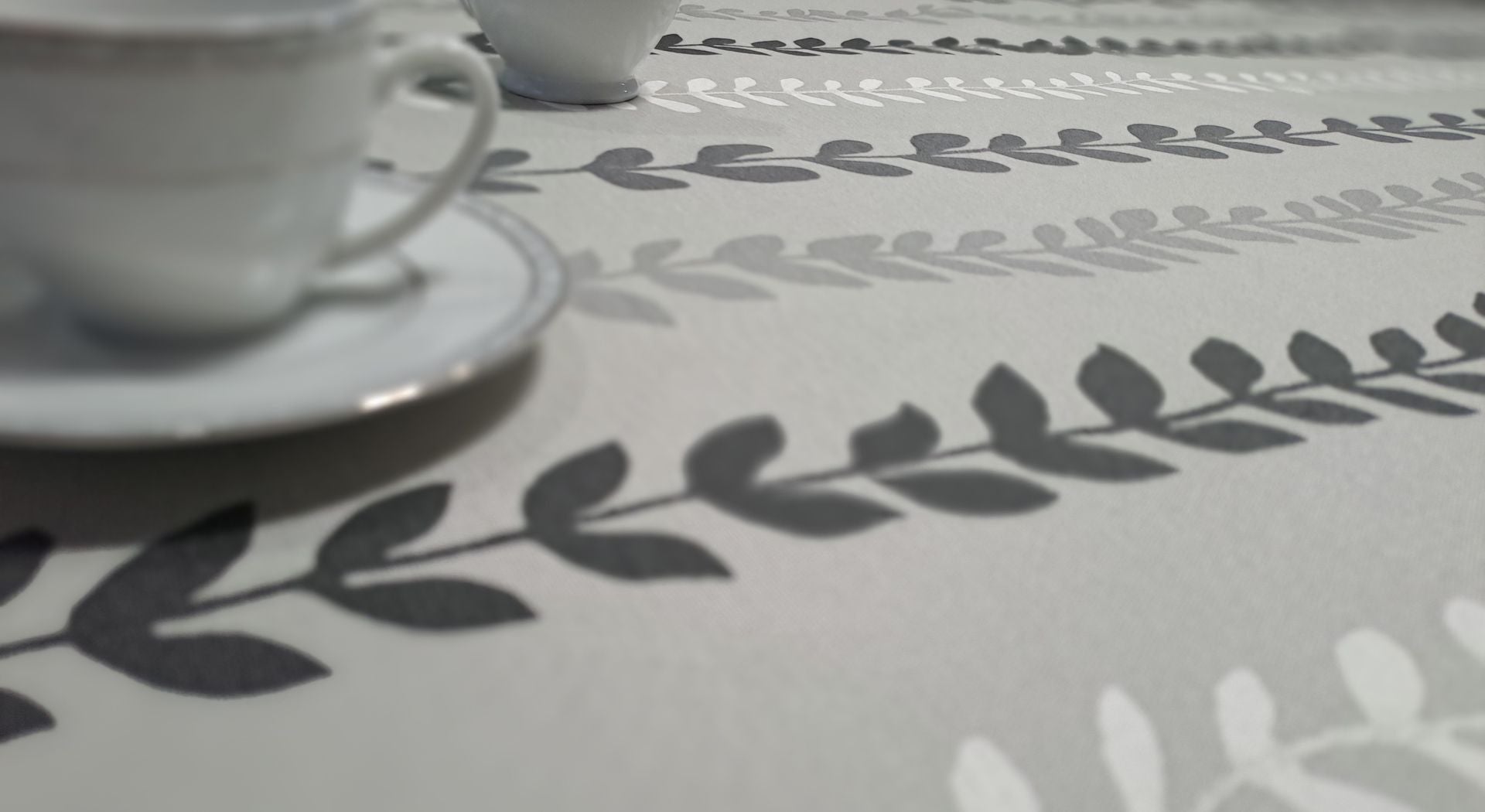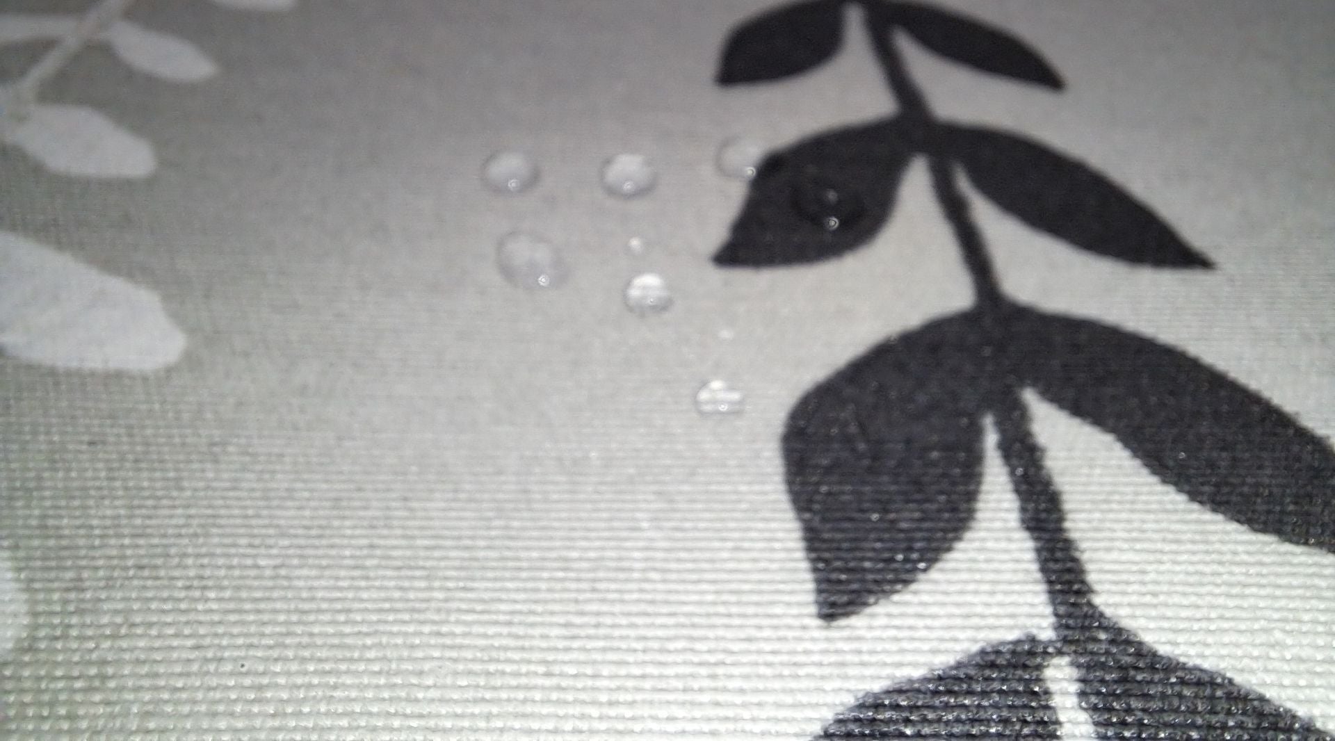 Si desea hacer la prueba, apoye el dedo sobre una mancha de aceite, o deposite una taza de café sucia por la parte inferior sobre nuestro mantel y déjelo un tiempo. Compruebe tras pasar un paño húmedo que la mancha no ha penetrado.