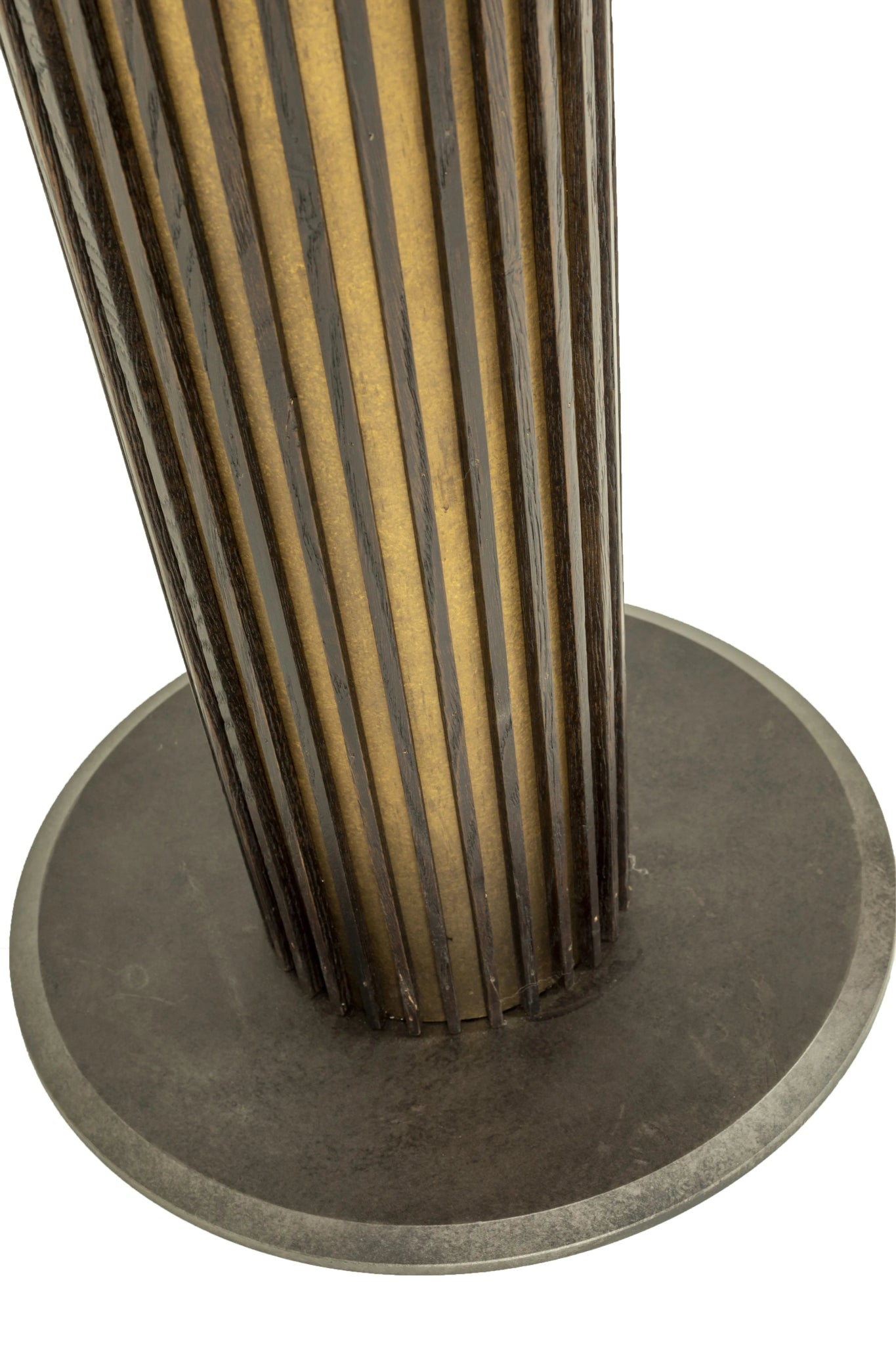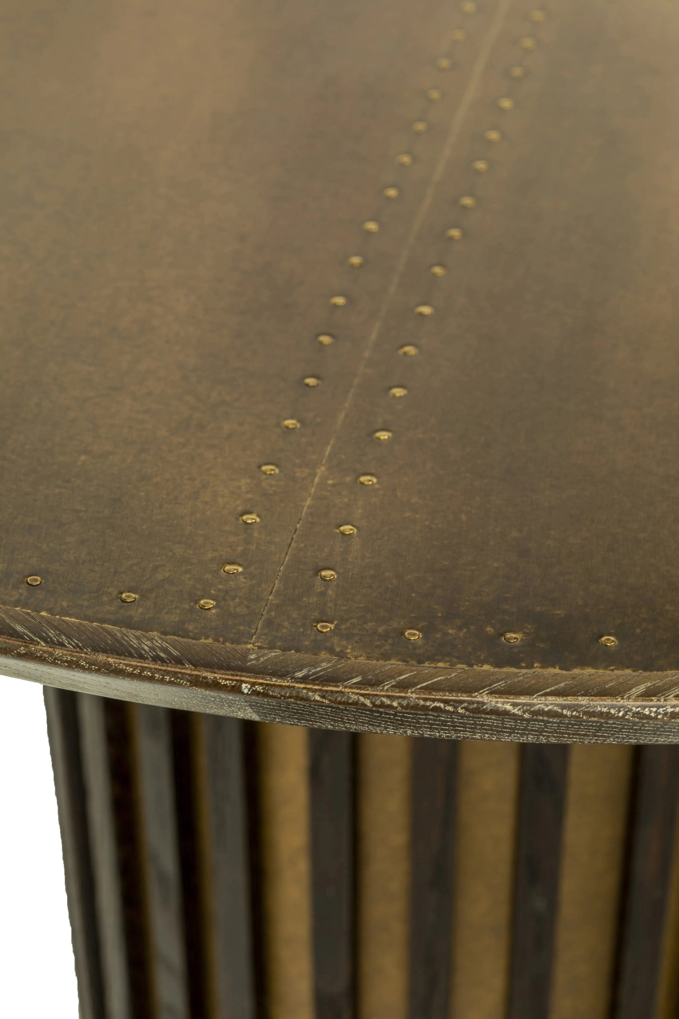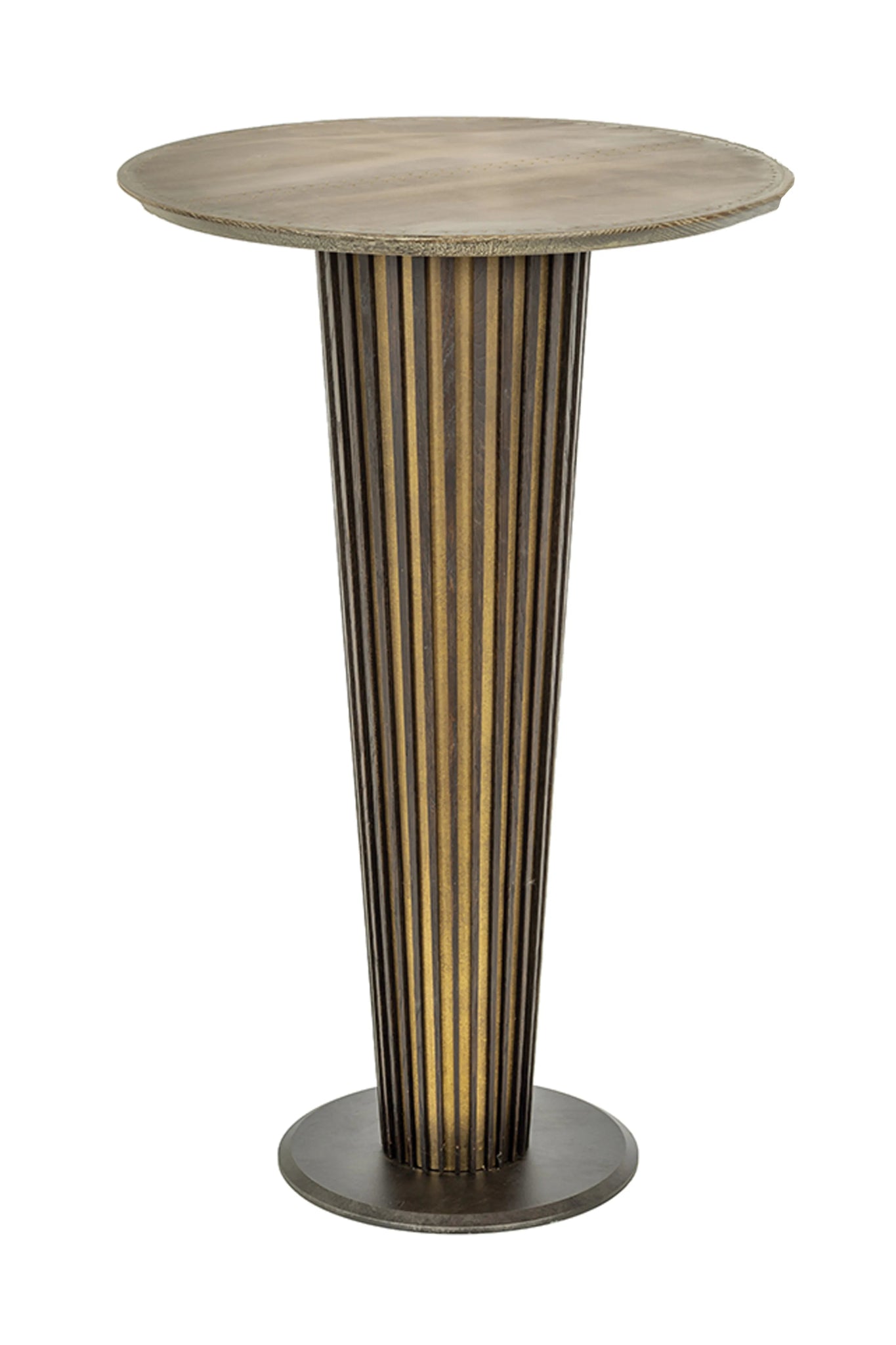 Preciosa mesa alta auxiliar fabricada en madera de roble en color marrón y base en latón.