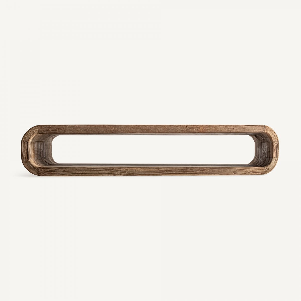 Mesa de centro artesanal, las variaciones de tonalidad, tamaño y forma o ciertas imperfecciones (grietas, nudos, marcas) como un valor añadido que la convierten en pieza única, en color natural fabricada en madera de teca reciclada. Patas con tacos regulables.