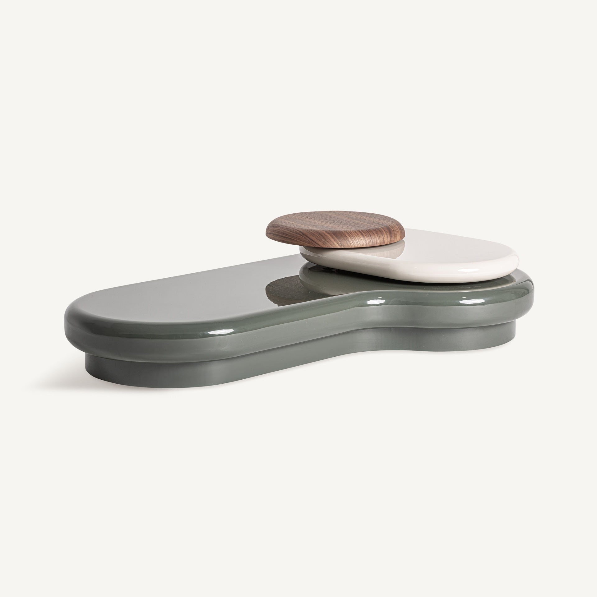La Mesa de Centro Ladder es una pieza de diseño contemporáneo que aporta modernidad y sofisticación a tu salón. Fabricada en madera DM en un elegante tono verde con acabado brillo, se combina con la calidez de la chapa de nogal en marrón y la pureza del blanco roto también en acabado brillante, creando un contraste armónico y lleno de estilo.