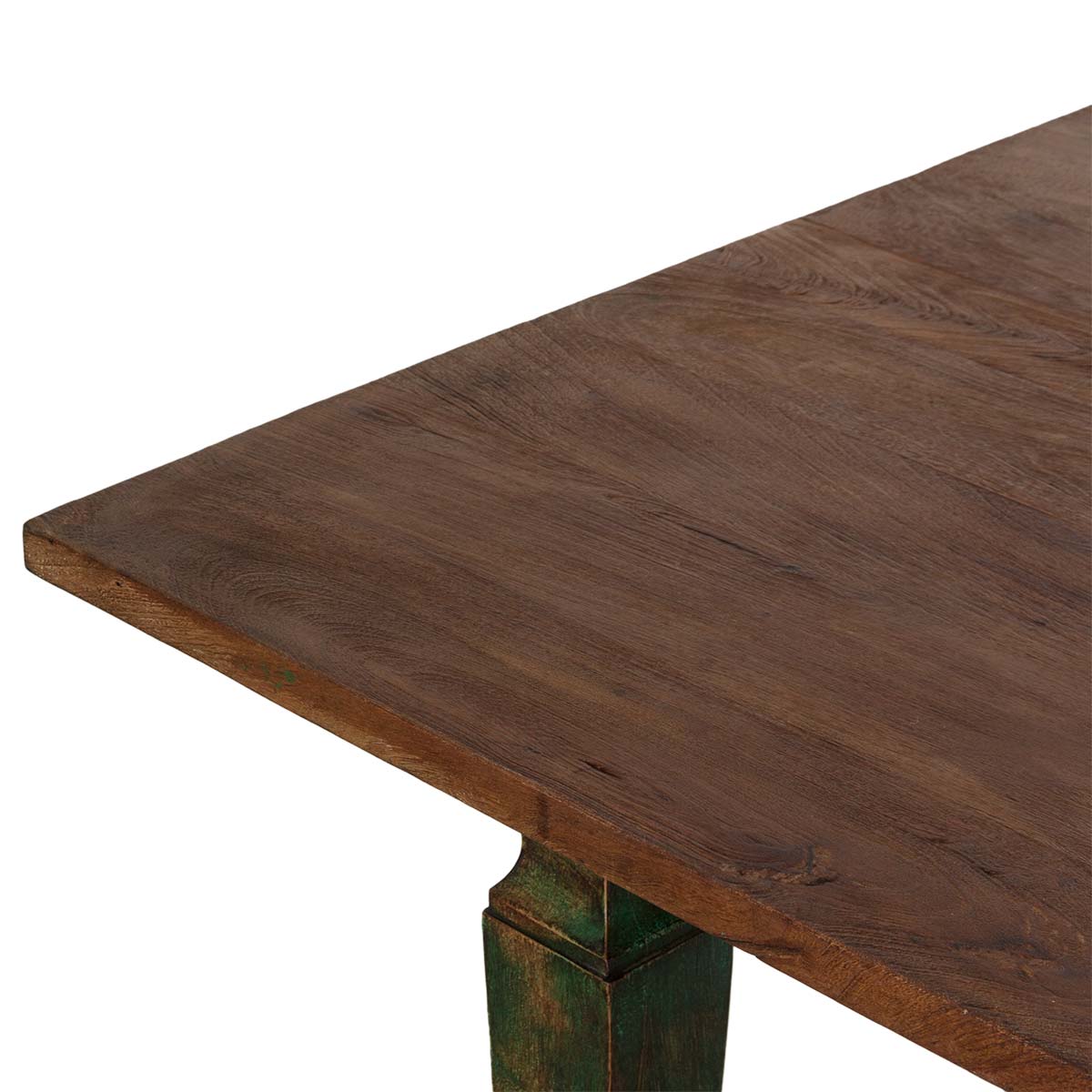 Esta mesa comedor destaca por su diseño original y lleno de personalidad. Fabricada en madera de acacia, cuenta con una tapa rectangular en color natural que resalta la belleza de las vetas y aporta calidez al espacio. Sus patas en tonos verde, azul y negro añaden un toque artístico y contemporáneo, transformando cualquier comedor en un ambiente moderno y acogedor. Ideal para quienes buscan una pieza única que combine funcionalidad, estilo y carácter propio.