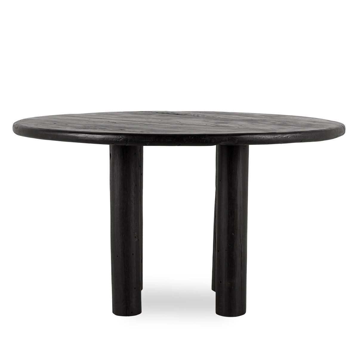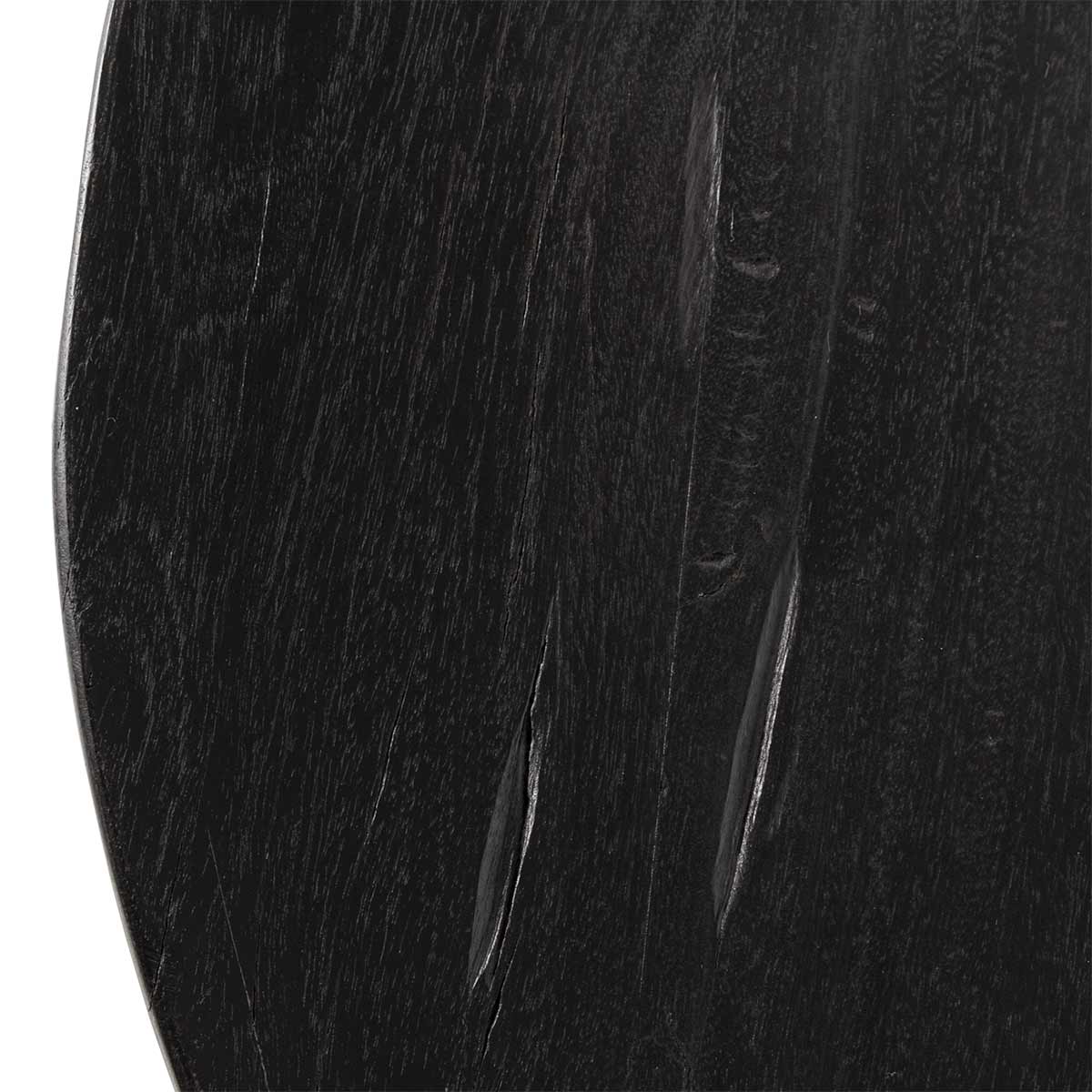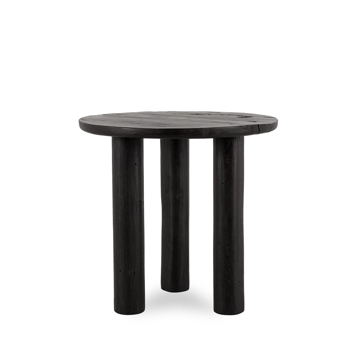 El tono negro de su superficie añade un toque de sofisticación y modernidad, creando un contraste perfecto con las texturas naturales de la madera. Su original estructura de tres o cuatro patas cilíndricas no solo ofrece una base sólida y equilibrada, sino que también aporta un elemento distintivo que la convierte en el centro visual de cualquier estancia.