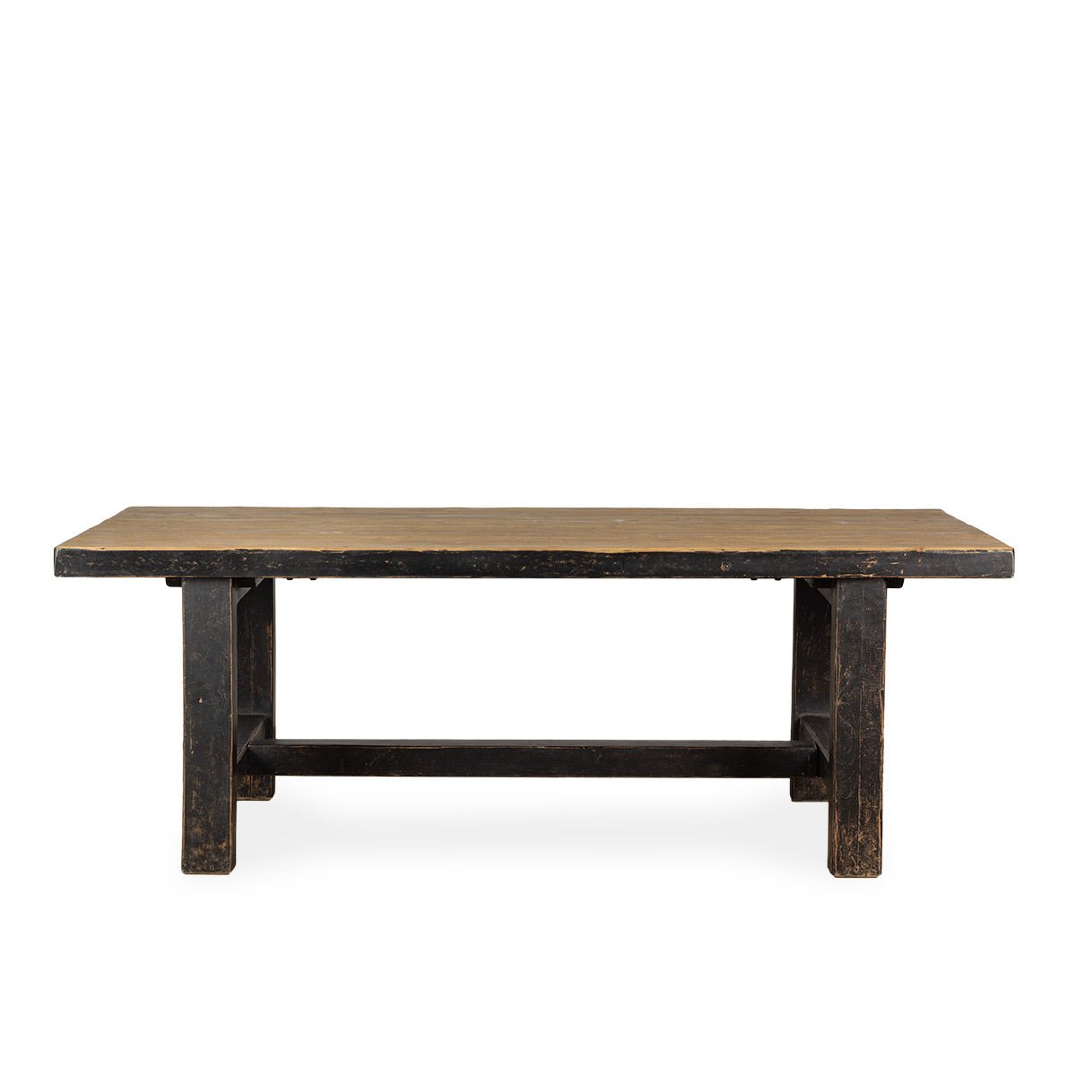 Esta mesa combina diseño rústico, funcionalidad y carácter, convirtiéndose en una pieza destacada para cualquier comedor. Su sobre en madera de olmo y pino sin tratar muestra la belleza natural de los materiales, con vetas y tonalidades auténticas que aportan calidez y autenticidad al espacio.