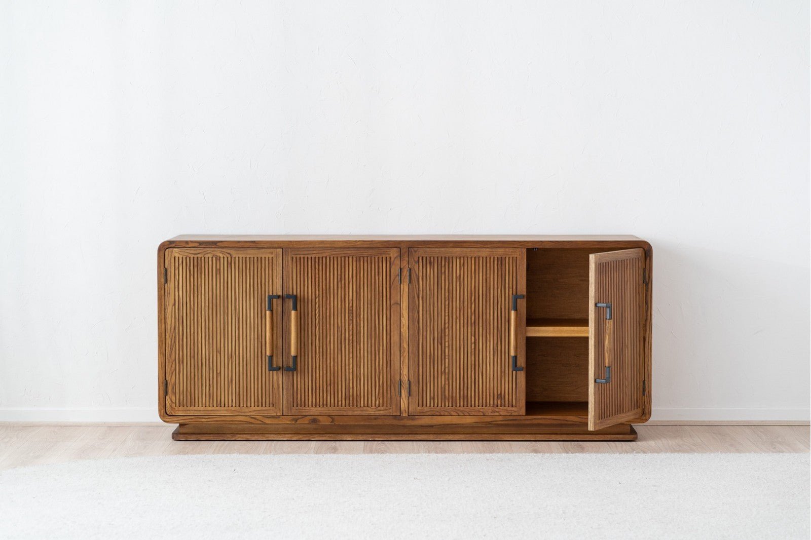 El aparador Hare combina diseño contemporáneo, calidez natural y funcionalidad, siendo ideal para crear espacios acogedores y sofisticados.