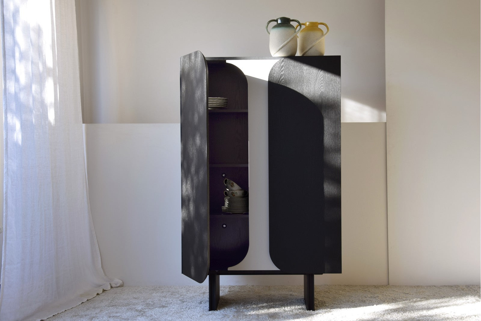 Ideal para dormitorios, recibidores o espacios polivalentes de estilo moderno o contemporáneo, el armario Curva Black se integra con facilidad, convirtiéndose en una pieza decorativa y funcional al mismo tiempo.