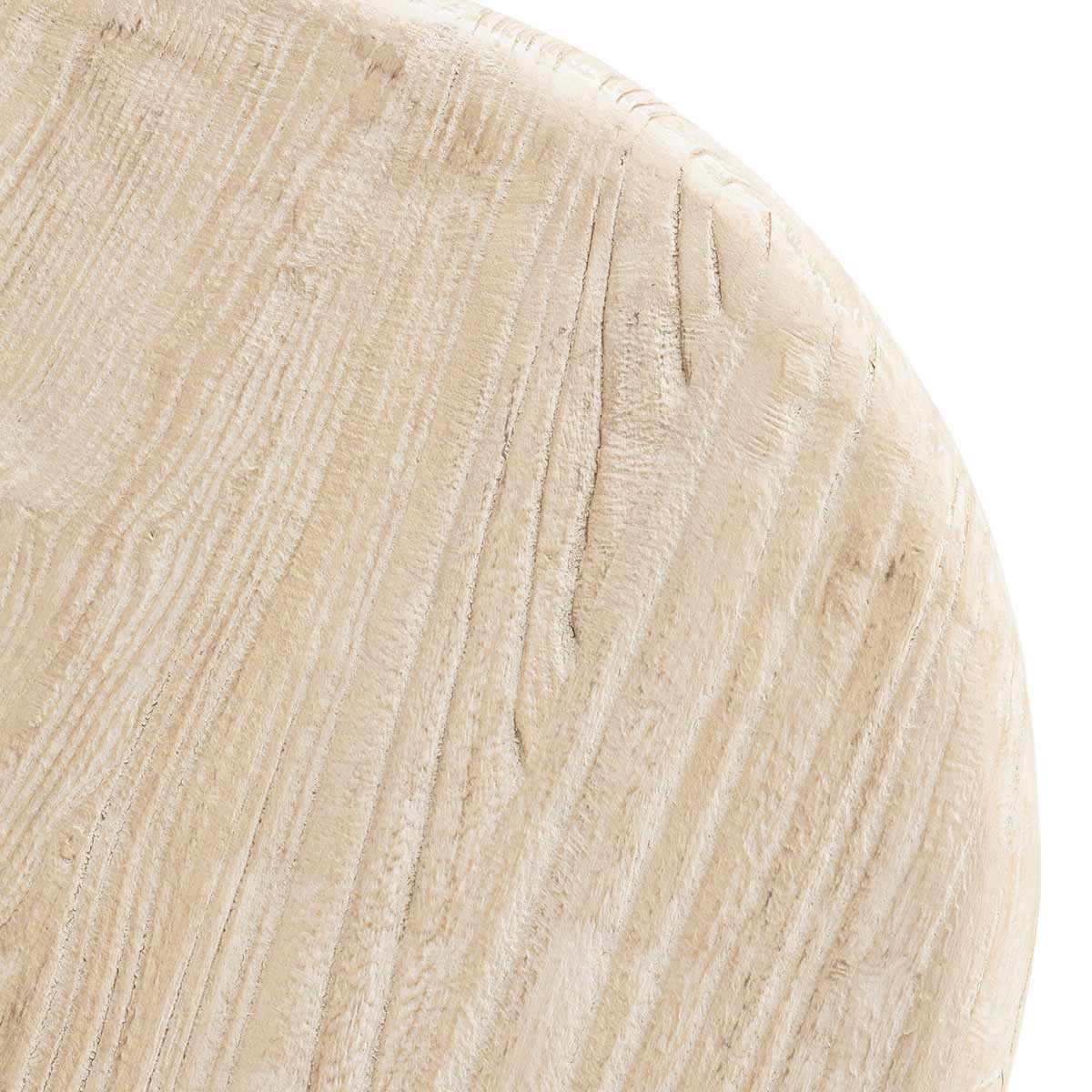 Fabricada en madera de olmo macizo, presenta un acabado natural que respeta las vetas, nudos y singularidades propias del material, reforzando su carácter exclusivo y artesanal.