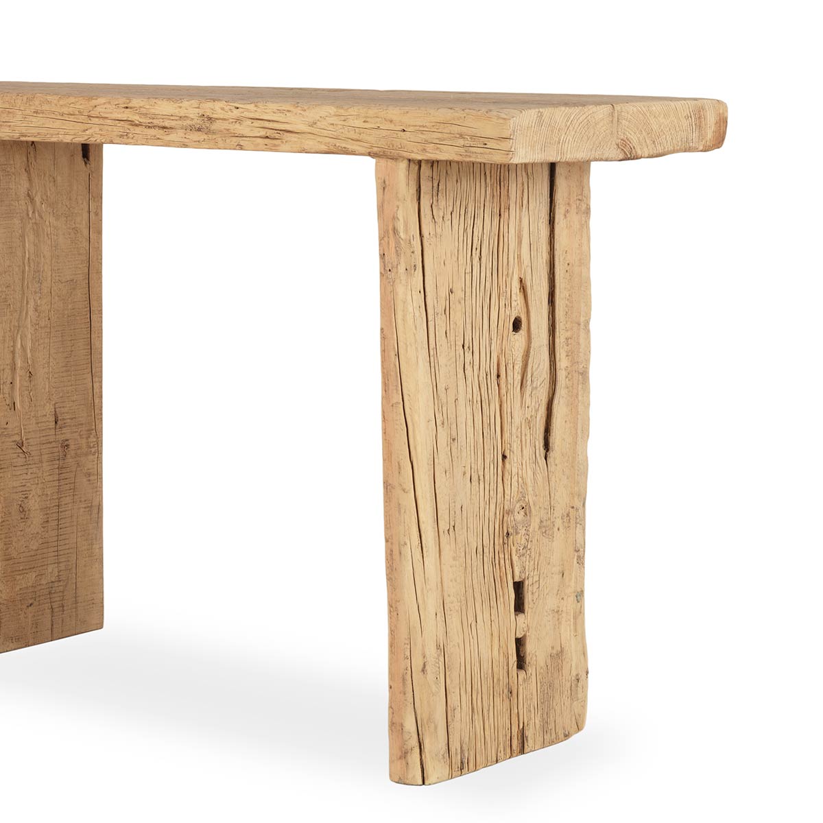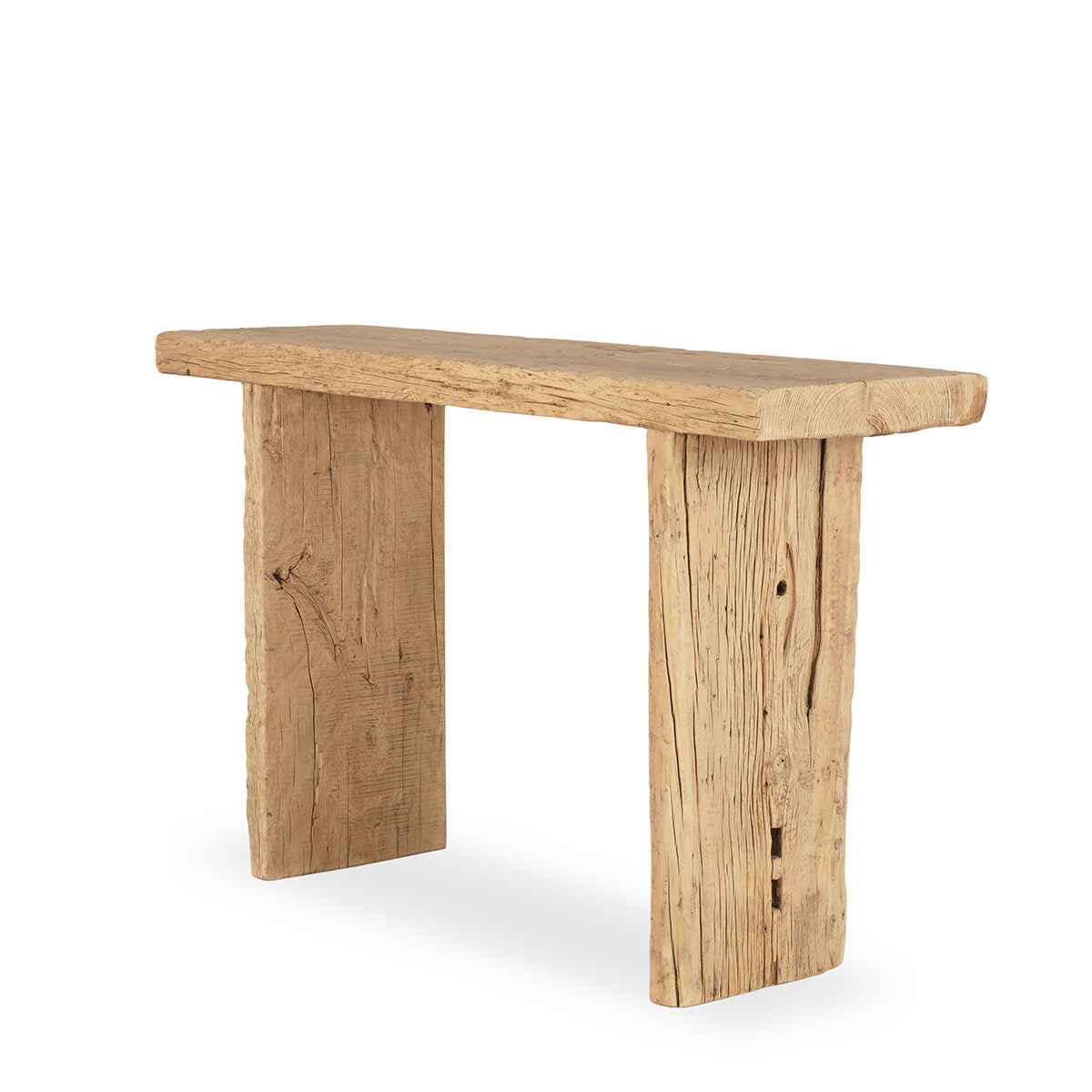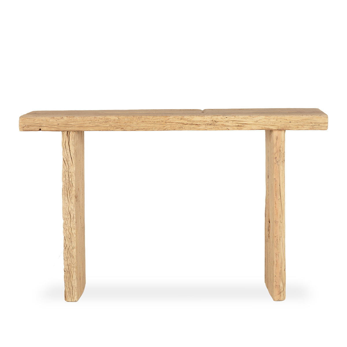 Esta consola fabricada en madera de olmo natural destaca por su estética serena y atemporal, donde la belleza del material es la auténtica protagonista. Su diseño sobrio realza las formas y las proporciones, aportando calidez y equilibrio visual al espacio.